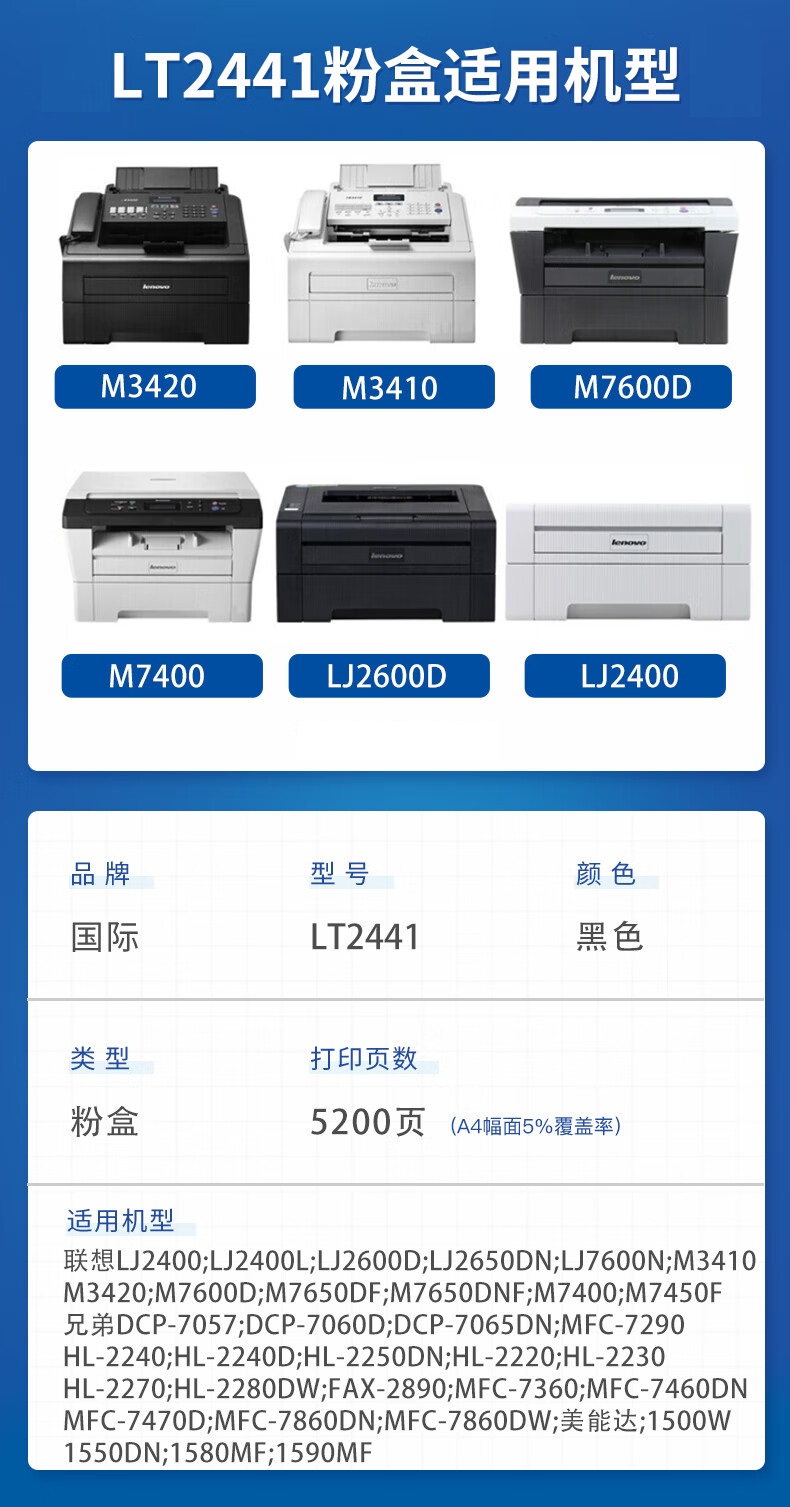 国际 LT2441大容粉盒 联想M7400 M7450F LJ2400 M7600D 单位:支 黑色
