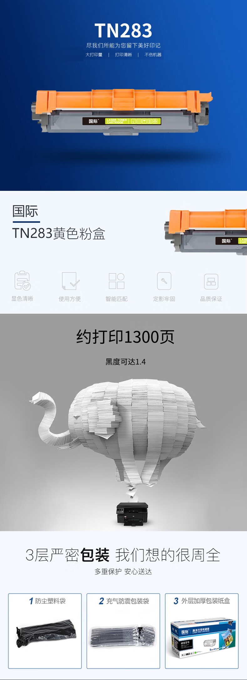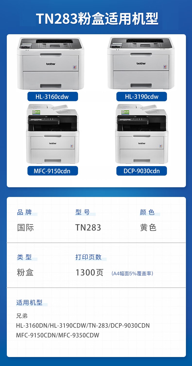 国际 TN283粉盒 兄弟HL3160CDW HL3190CDW DCP-9030CDN 单位:支 黄色
