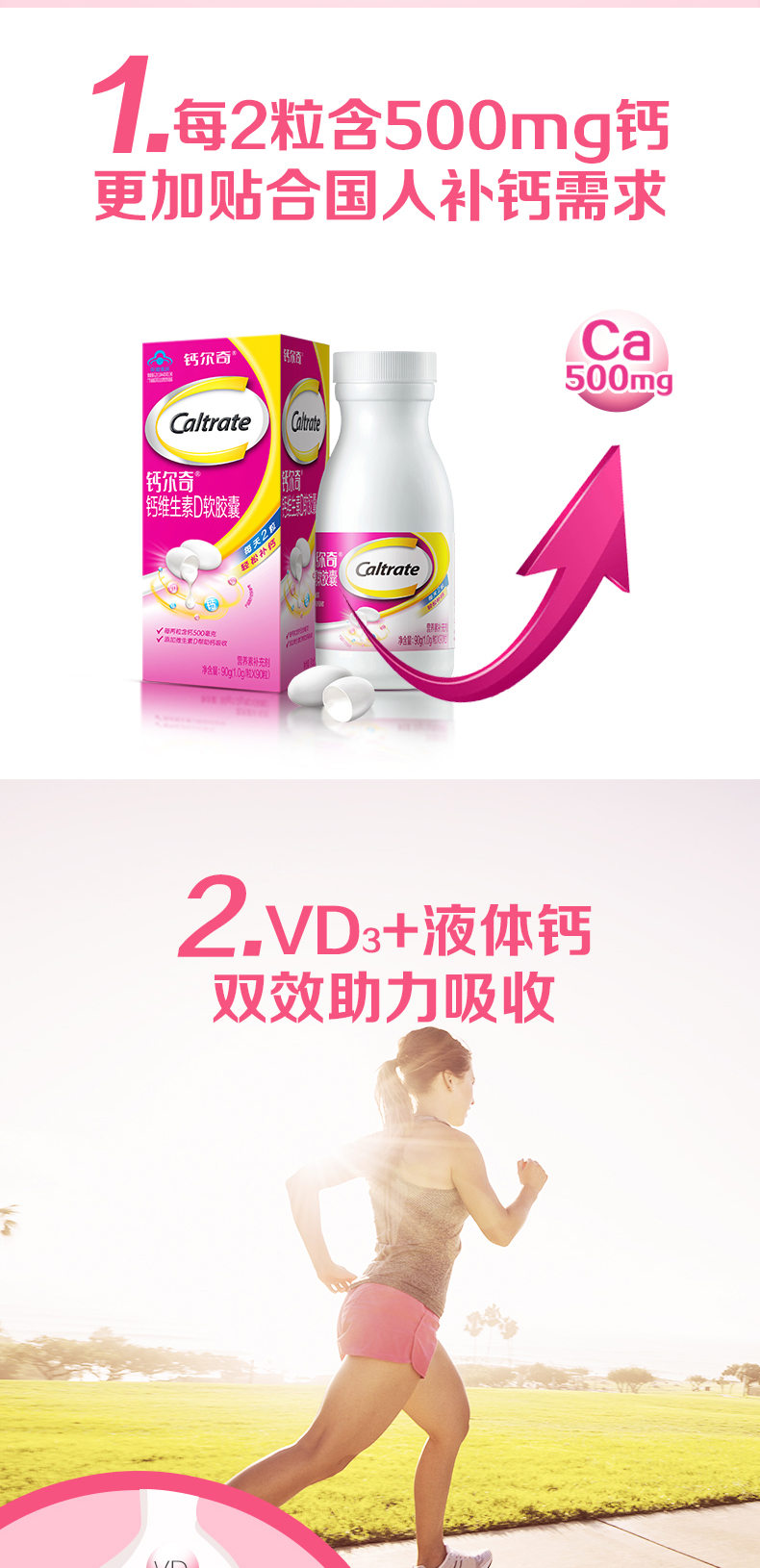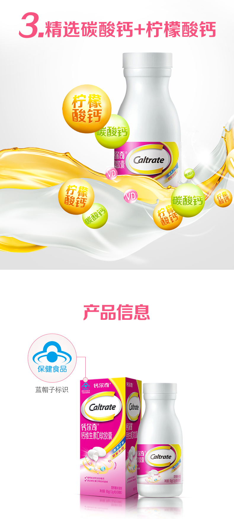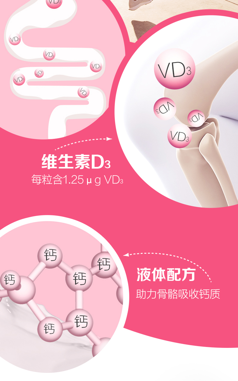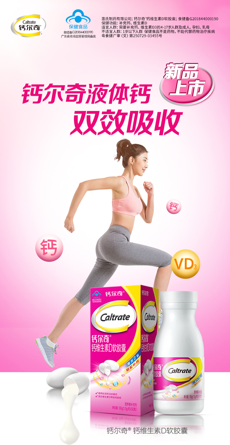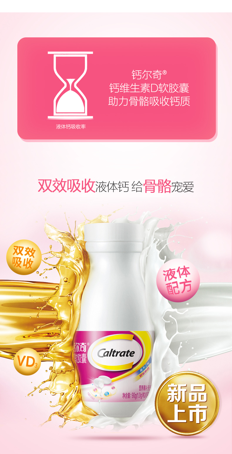 钙尔奇(Caltrate)液体钙 补钙 维生素D钙片 维生素软胶囊 90粒/盒 图片色