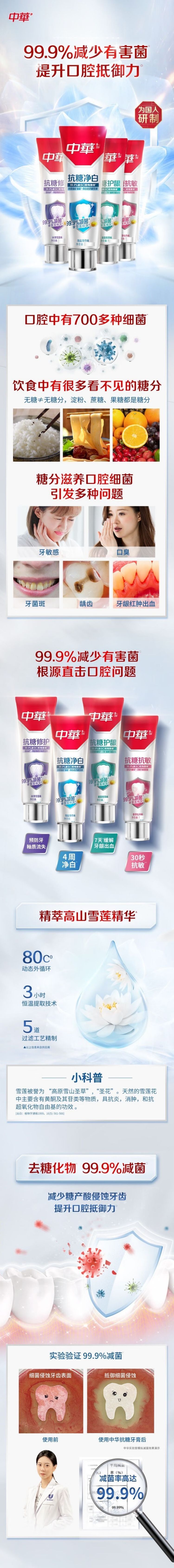 中华抗糖修护牙釉质牙膏 冰清雪莲味130G*3支装 混色