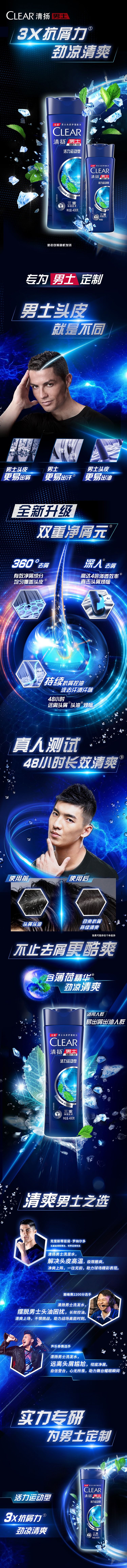 清扬男士活力运动薄荷型洗发露活力浴露套装(400+100X2)G+平衡控油沐浴露活力运动720G 混色