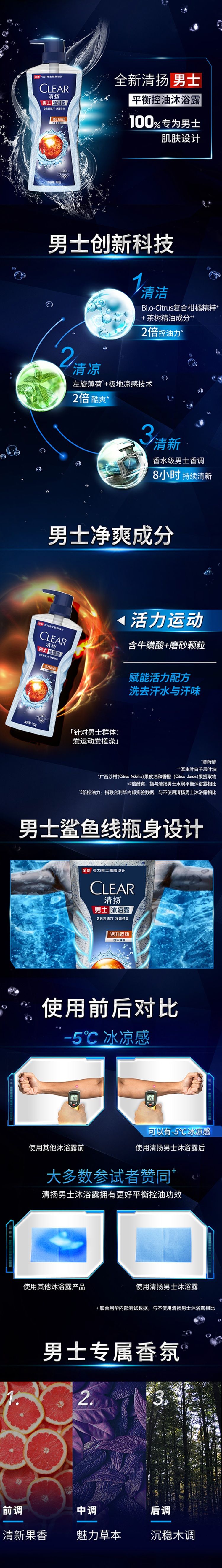 清扬男士头皮劲活专研去屑洗发露劲澈净屑型480G+男士平衡控油沐浴露活力运动720G+士爽肤水活净能 混色