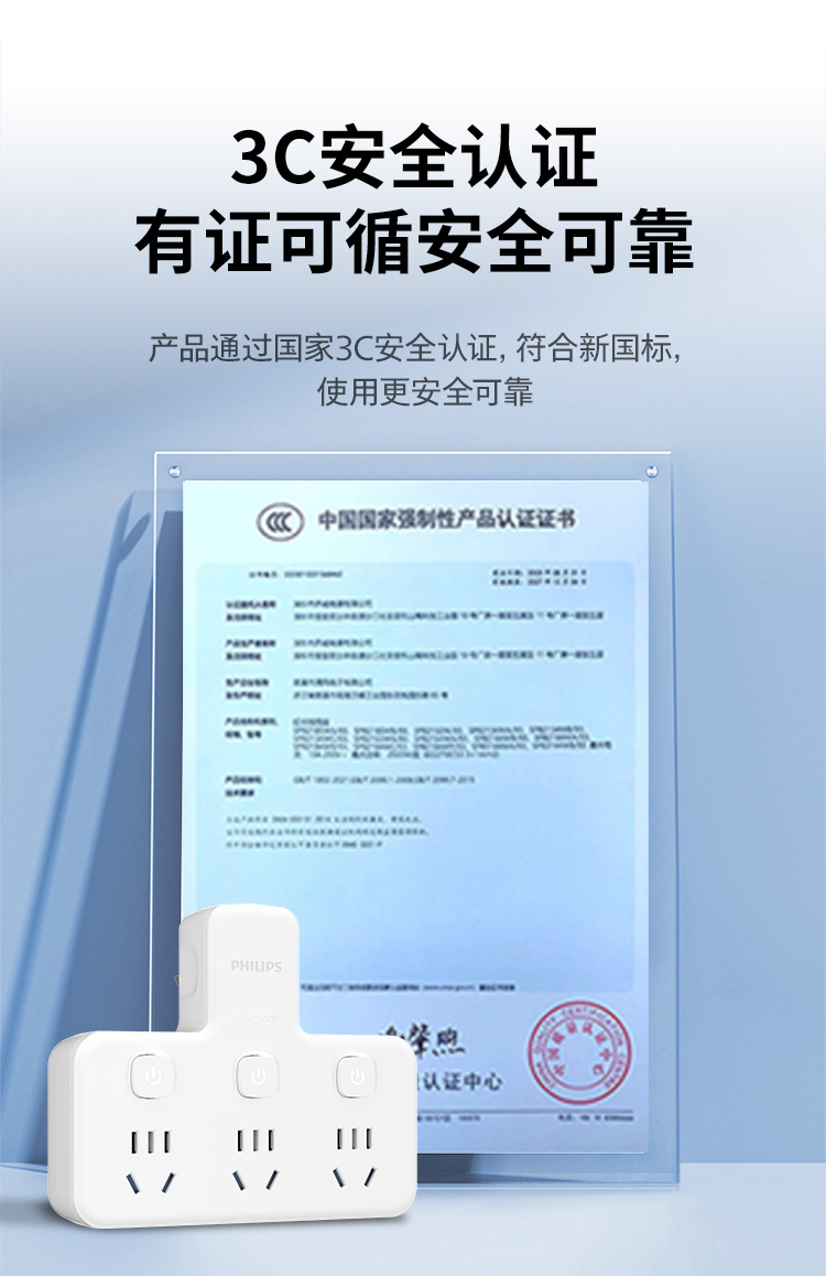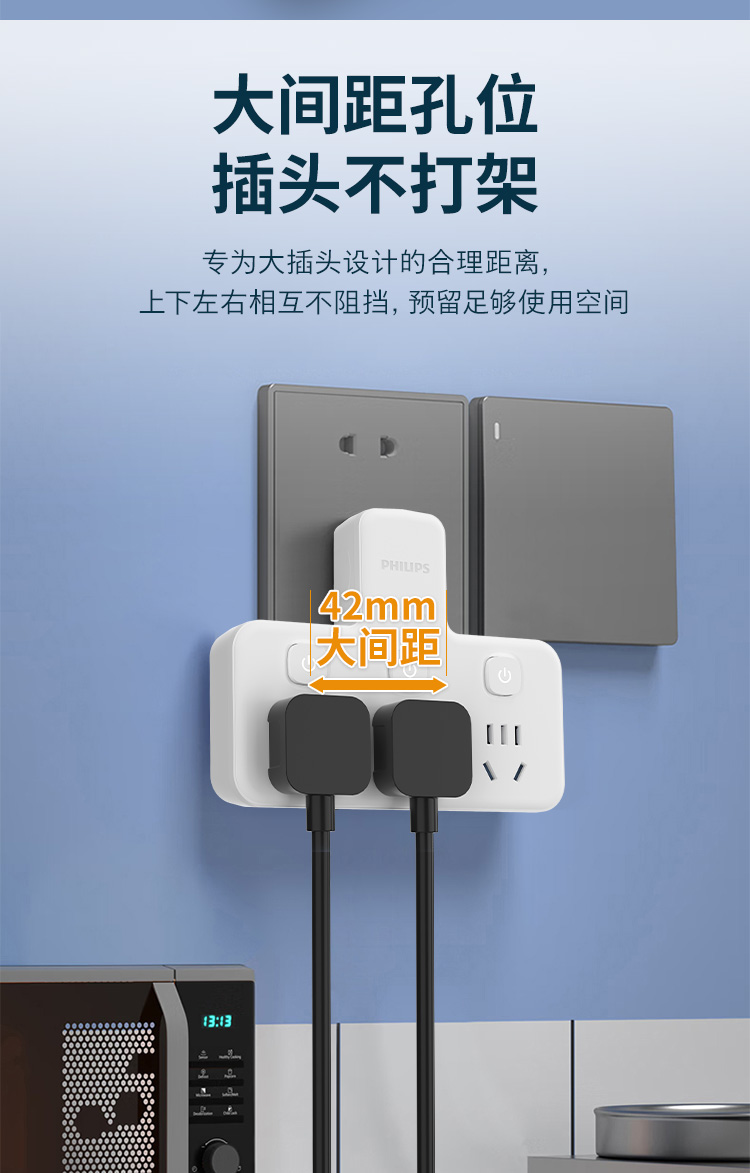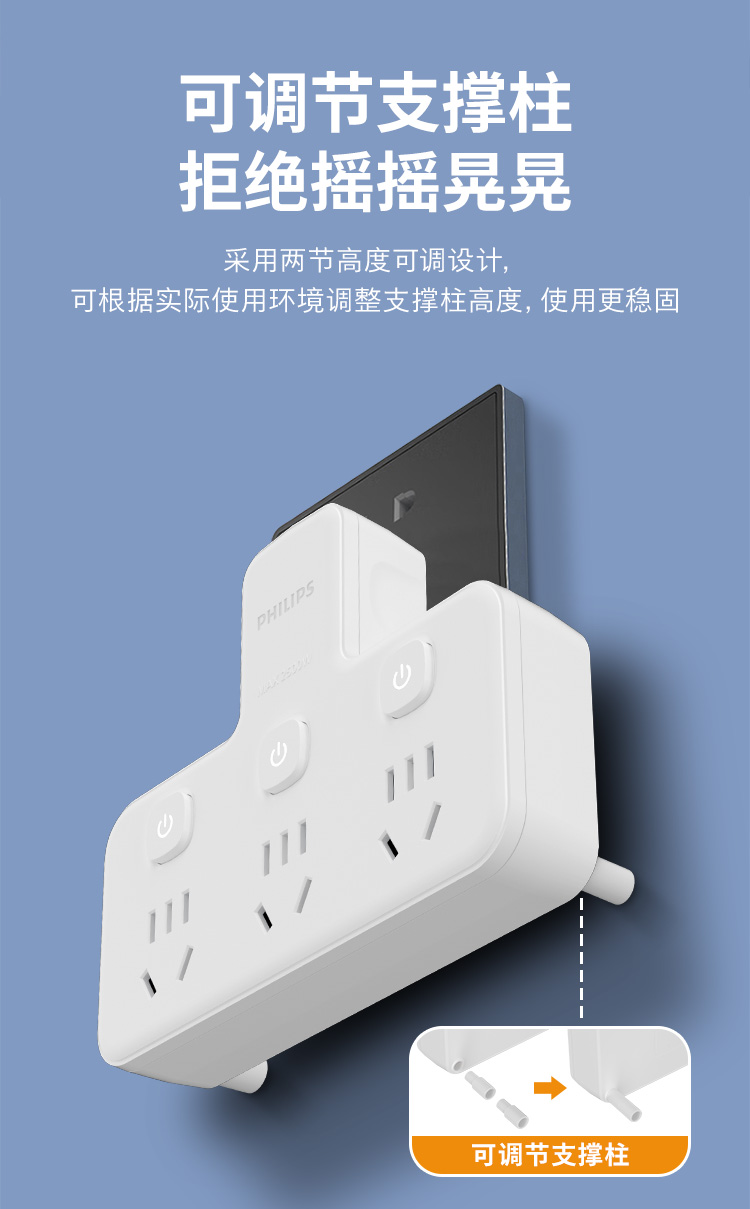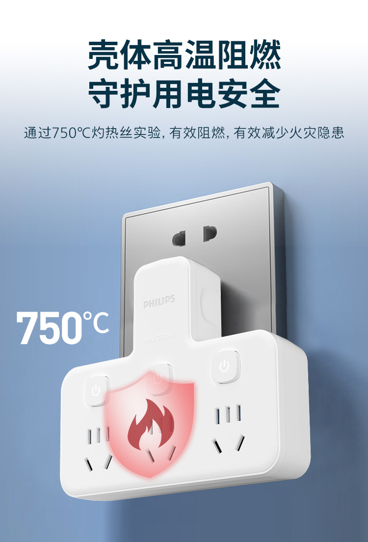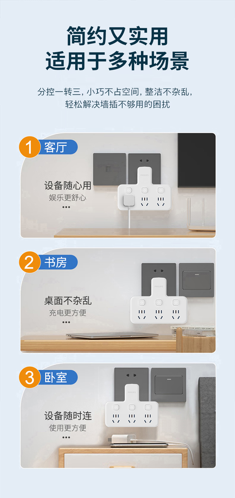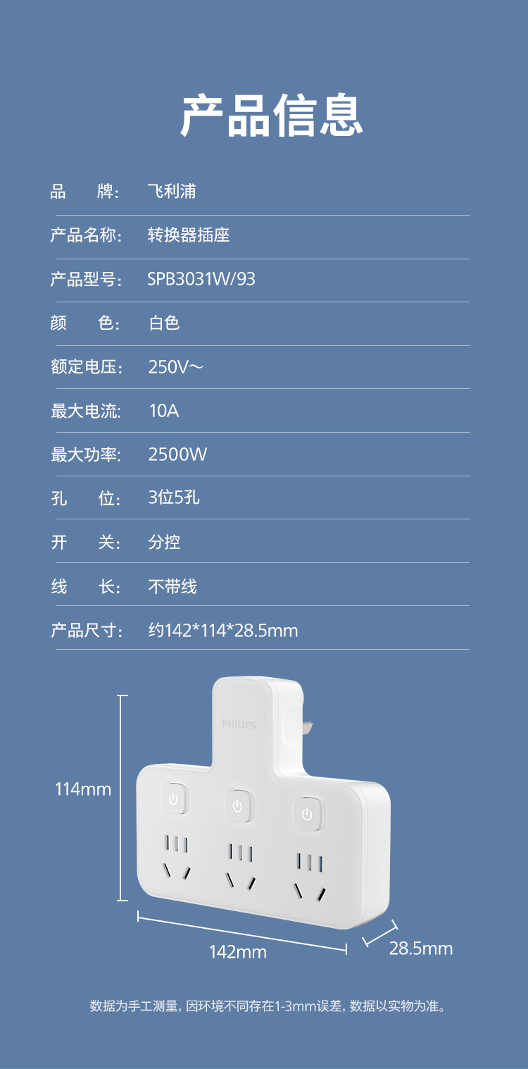 飞利浦插座排插品字形插座无线一转三位插座分控3位5孔SPB3031W/93(单位:个) 白色