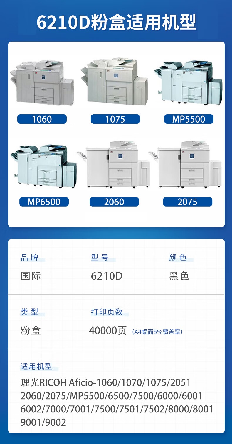 国际 6210D粉盒 理光1070 7500 6503 7503 7001 1060 单位:支 黑色