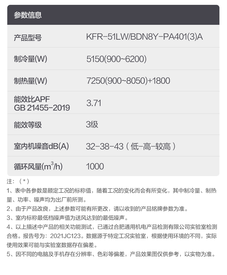 美的(Midea)KFR-51LW/BDN8Y-PA401(3)A 大2匹变频冷暖单位:台 白色