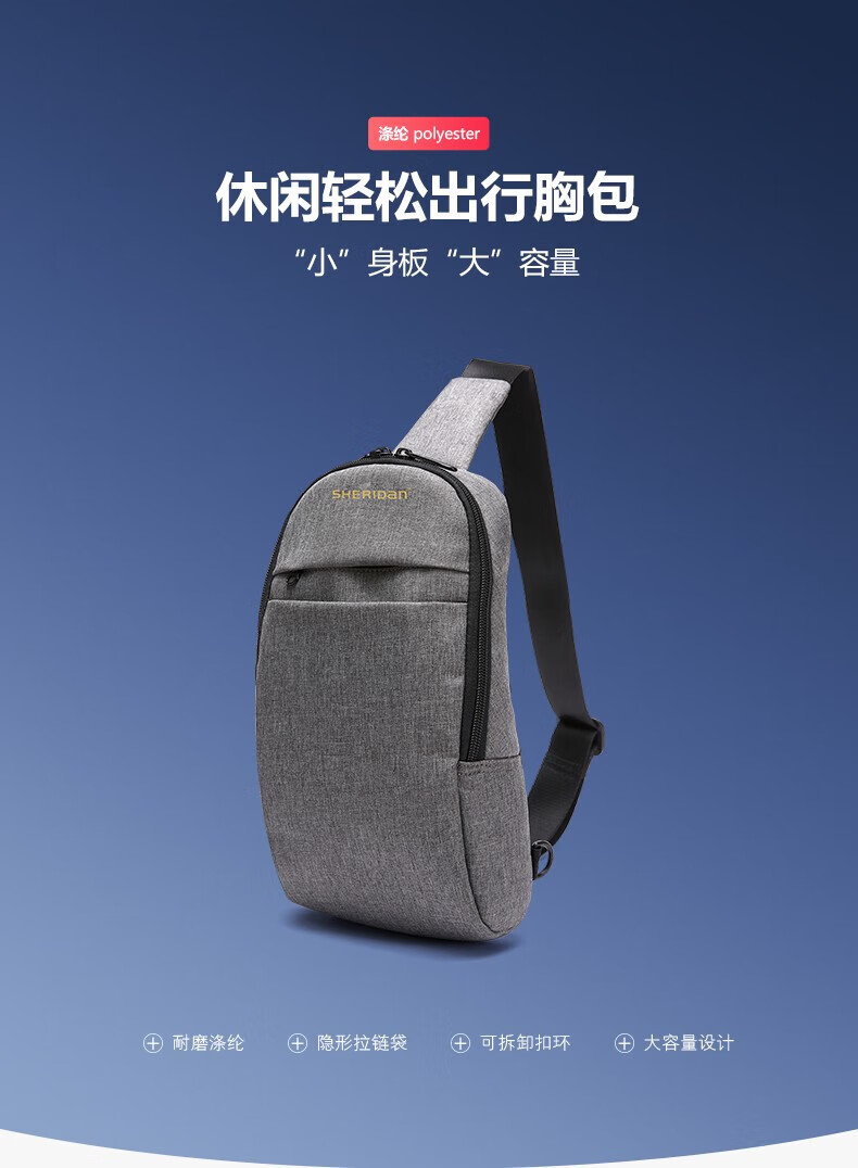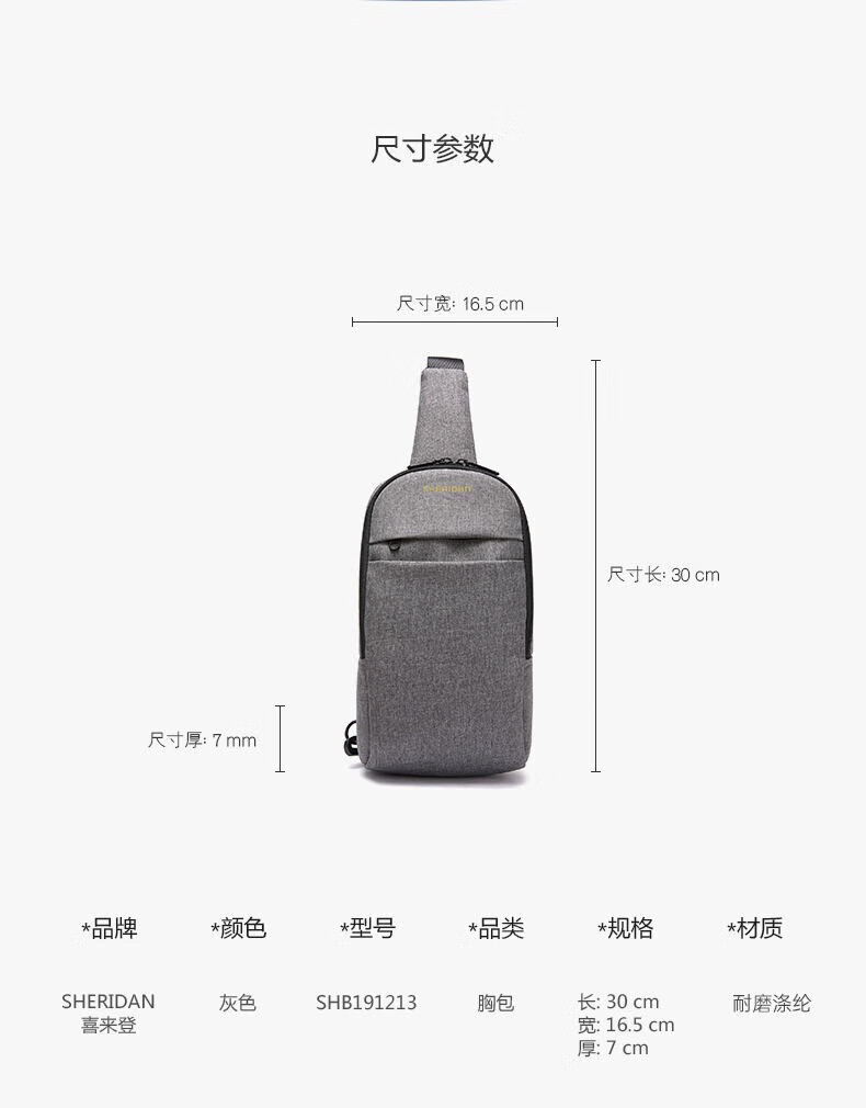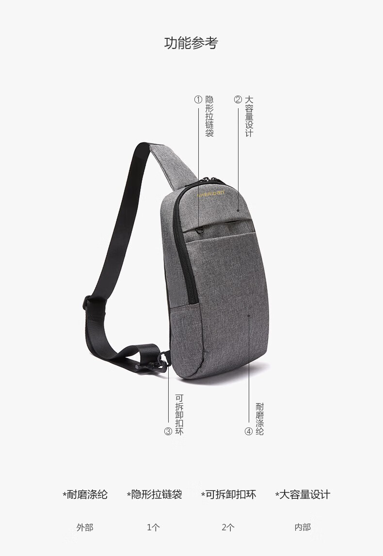 SHERIDan胸包 都市休闲简约单肩包 斜挎包 灰色SHB191213单位:个 灰色