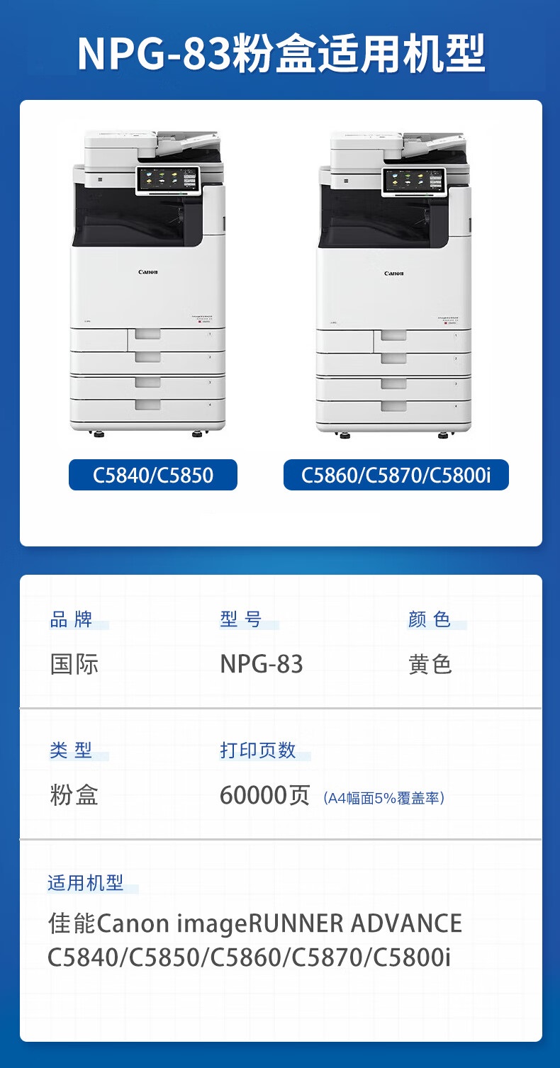 国际 NPG-83大容粉盒 佳能C5800i C5840 5850 5860 5870 单位:支 黄色
