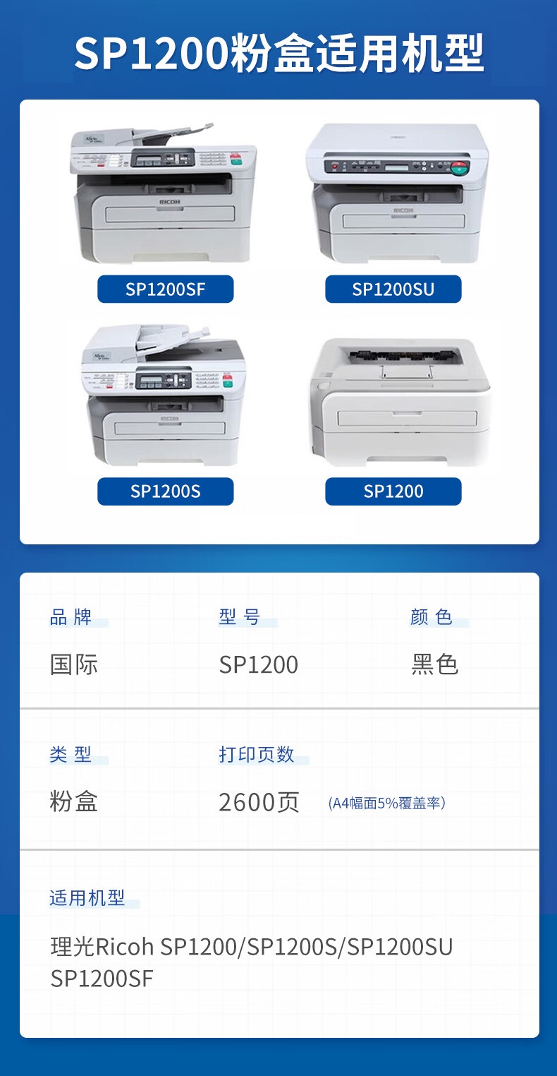 国际 SP1200粉盒 理光SP1200/SP1200S/SP1200SU/SP1200SF单位:支 黑色