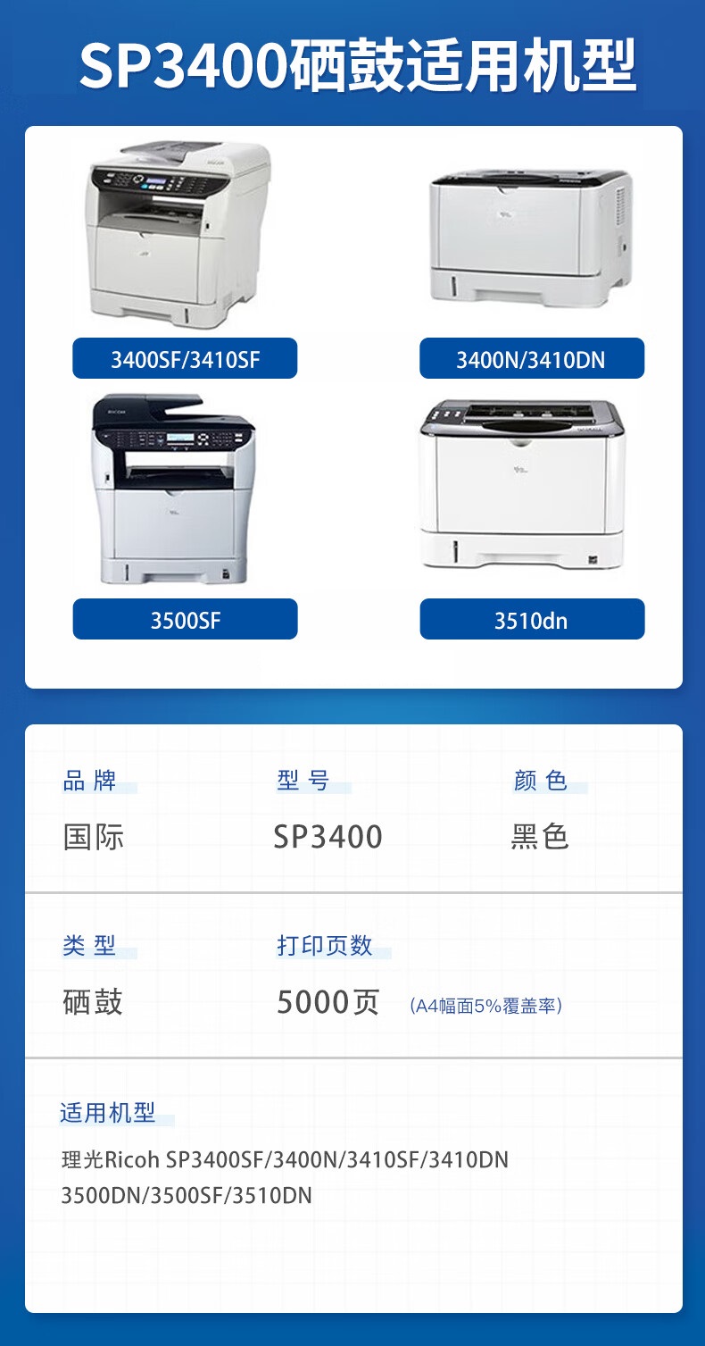 国际 SP3400硒鼓 理光3400SF 3400N 3410SF 3410DN 单位:支 黑色