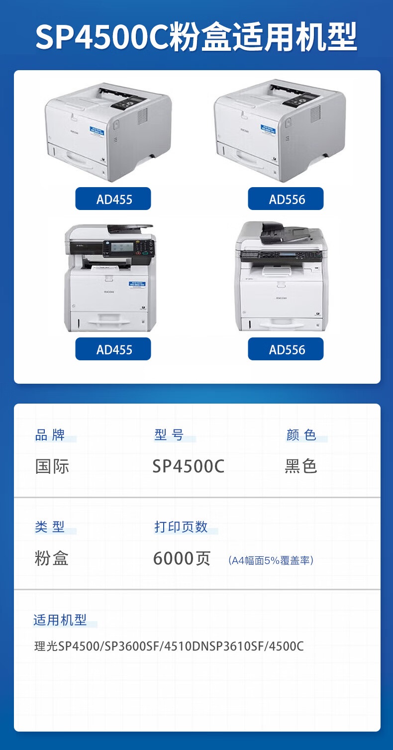 国际 SP4500C粉盒 理光SP3600DN 3610SF 4510DN 4510SF 单位:支 黑色