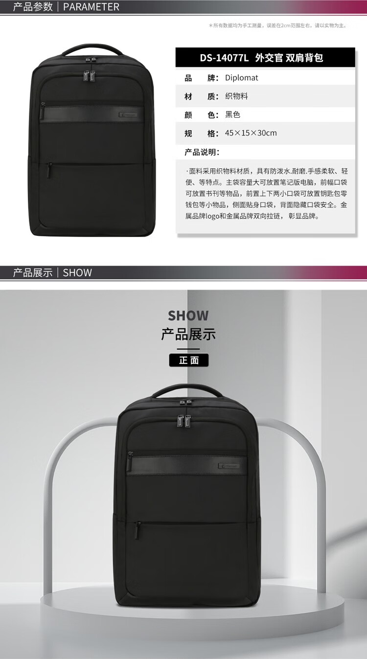 外交官双肩背包DS-14077L单位:个 黑色