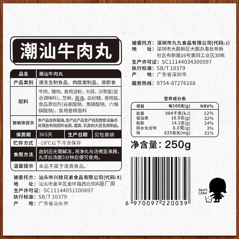 丸子妹潮汕牛肉丸1500g(250*6袋) 拿铁色