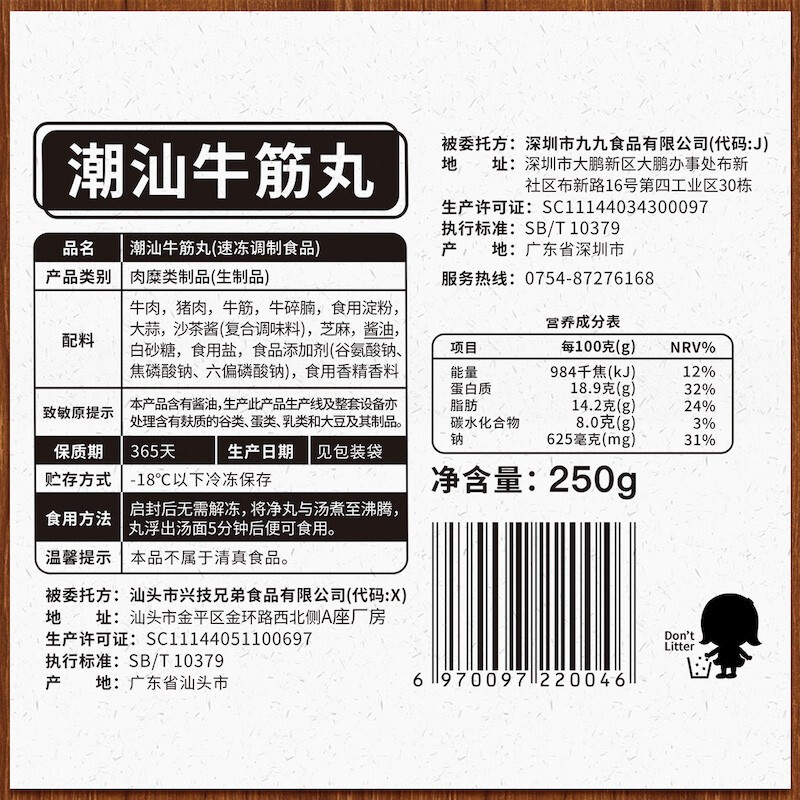 丸子妹潮汕牛筋丸1500g(250*6袋) 拿铁色