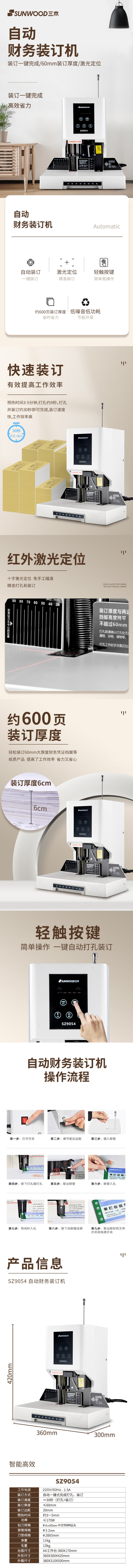 三木 SZ9054 自动财务装订机 热熔铆管电动打孔 激光定位 60mm(计价单位:1台) 浅灰色