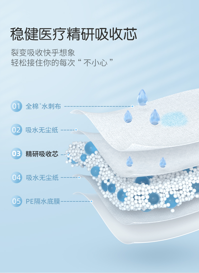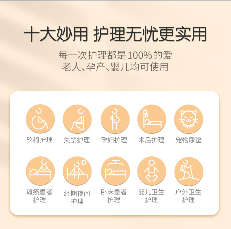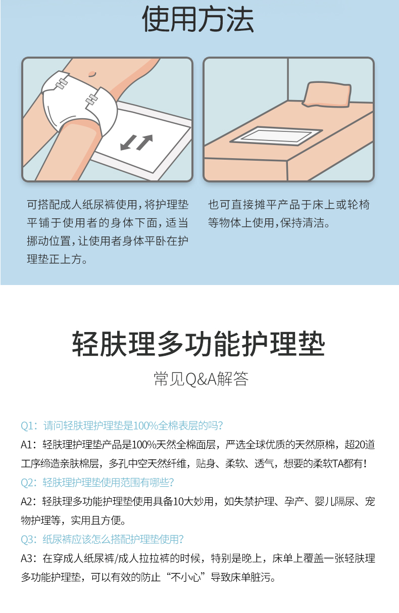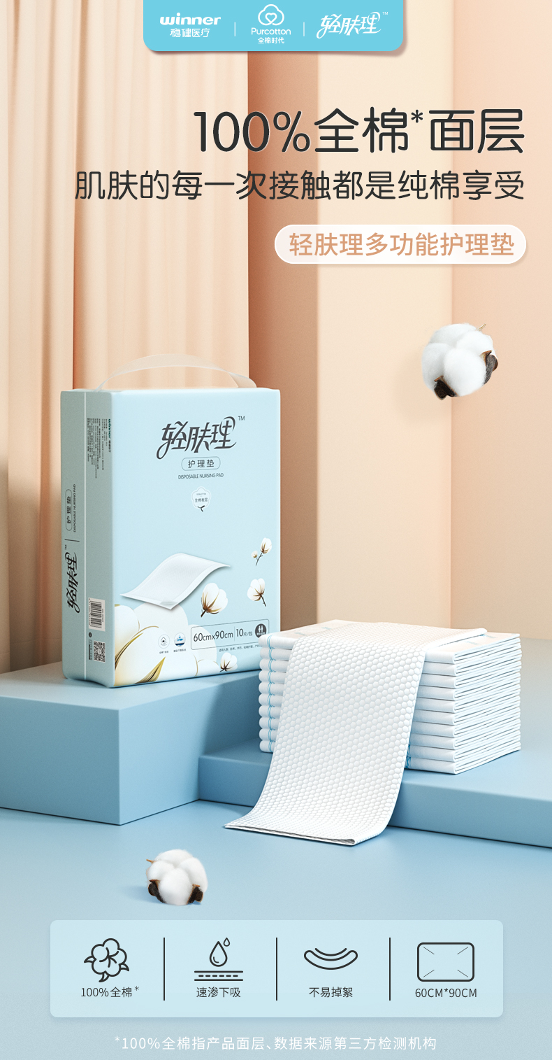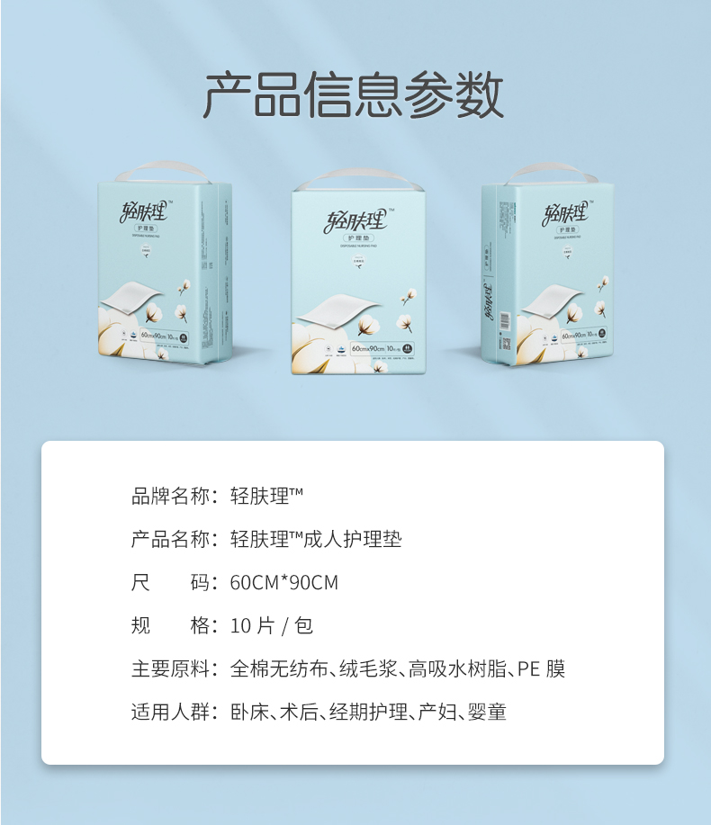 全棉时代轻肤理护理垫孕妇产褥垫成人婴儿老人一次性隔尿垫10片/包 3包 蓝色