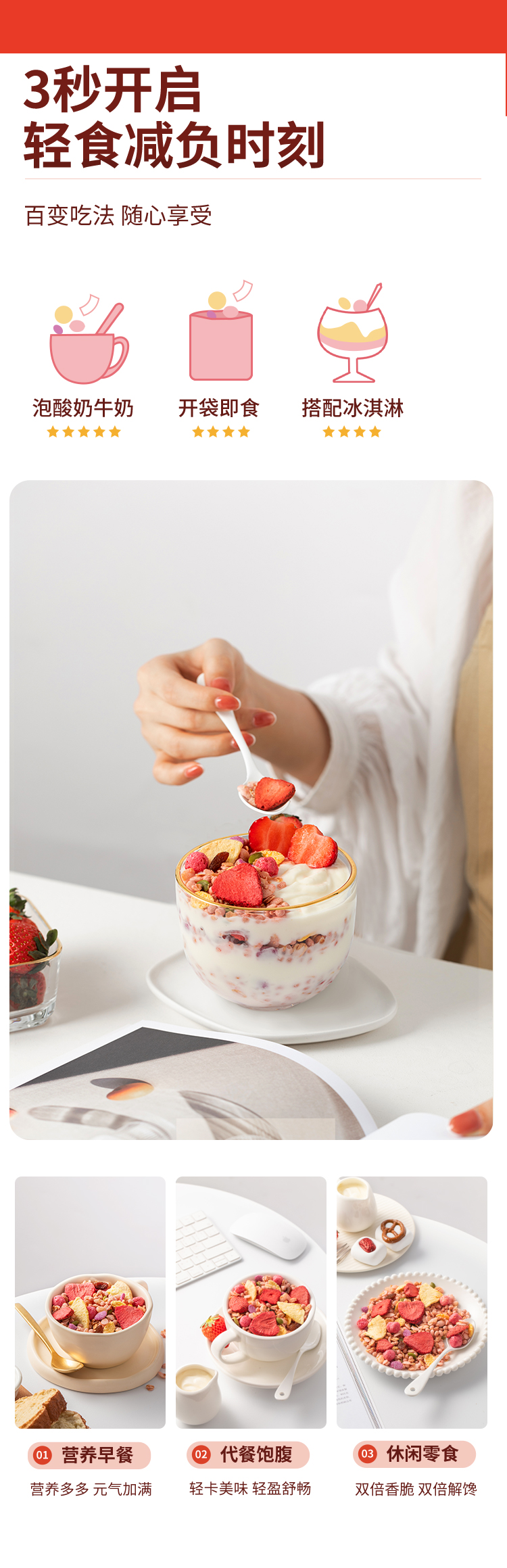 好麦多(HONlife)草莓缤纷益生元水果麦片220g*3袋 (单位:袋)红色