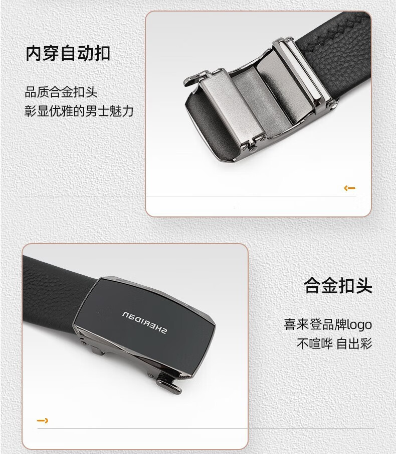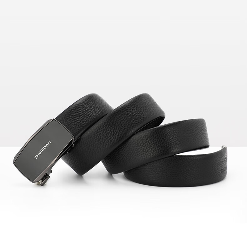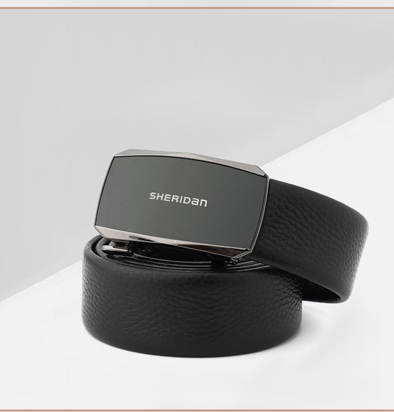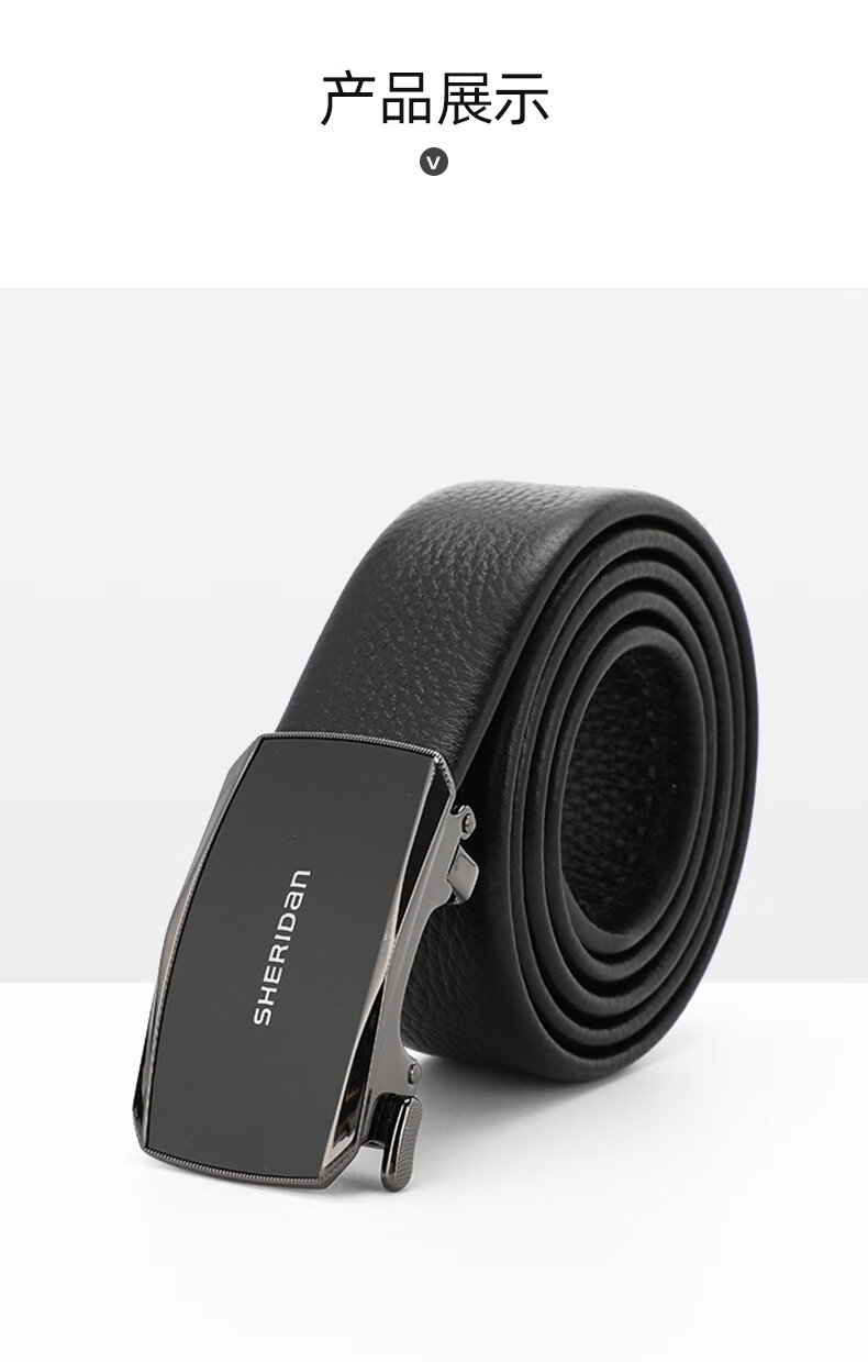SHERIDan喜来登男士皮带头层牛皮革自动扣休闲裤袋 礼盒装NL210352S单位:条 黑色