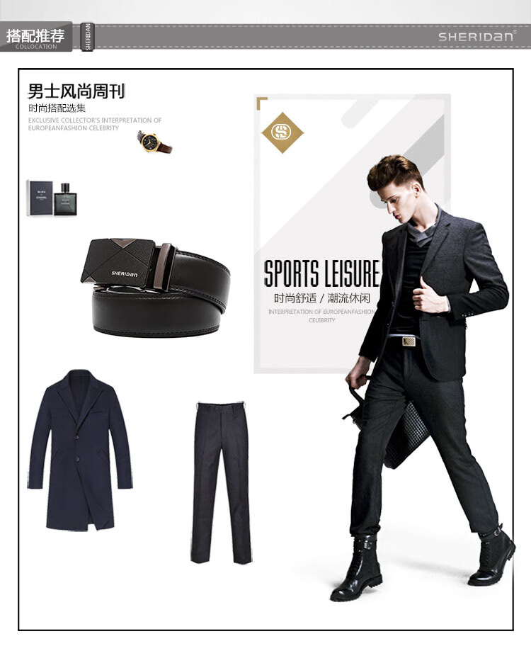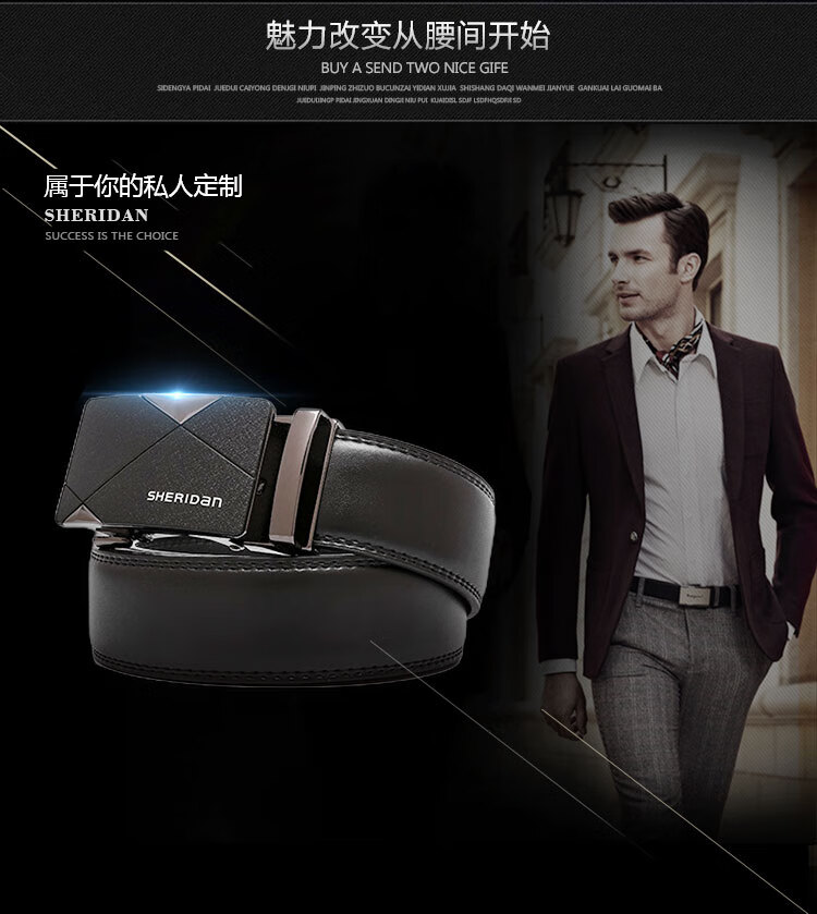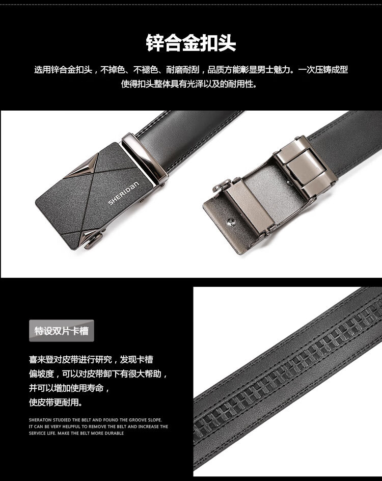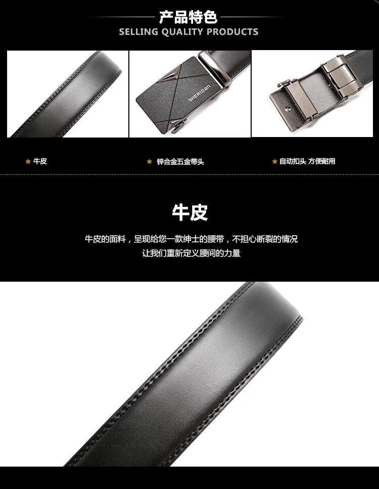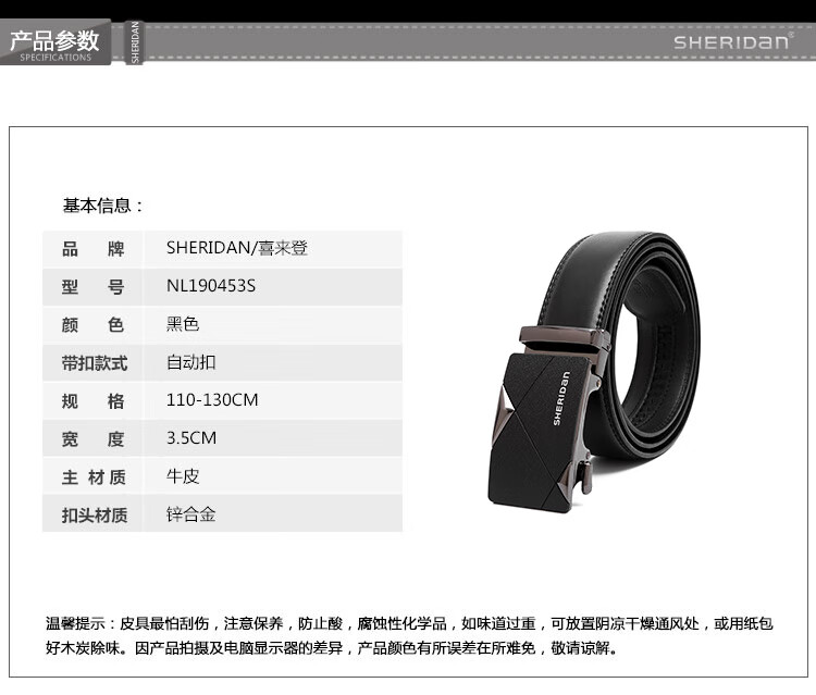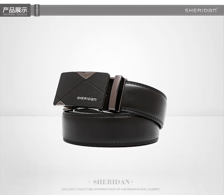 SHERIDan喜来登男士皮带牛皮腰带自动扣裤袋礼盒装NL190453S单位:条 黑色