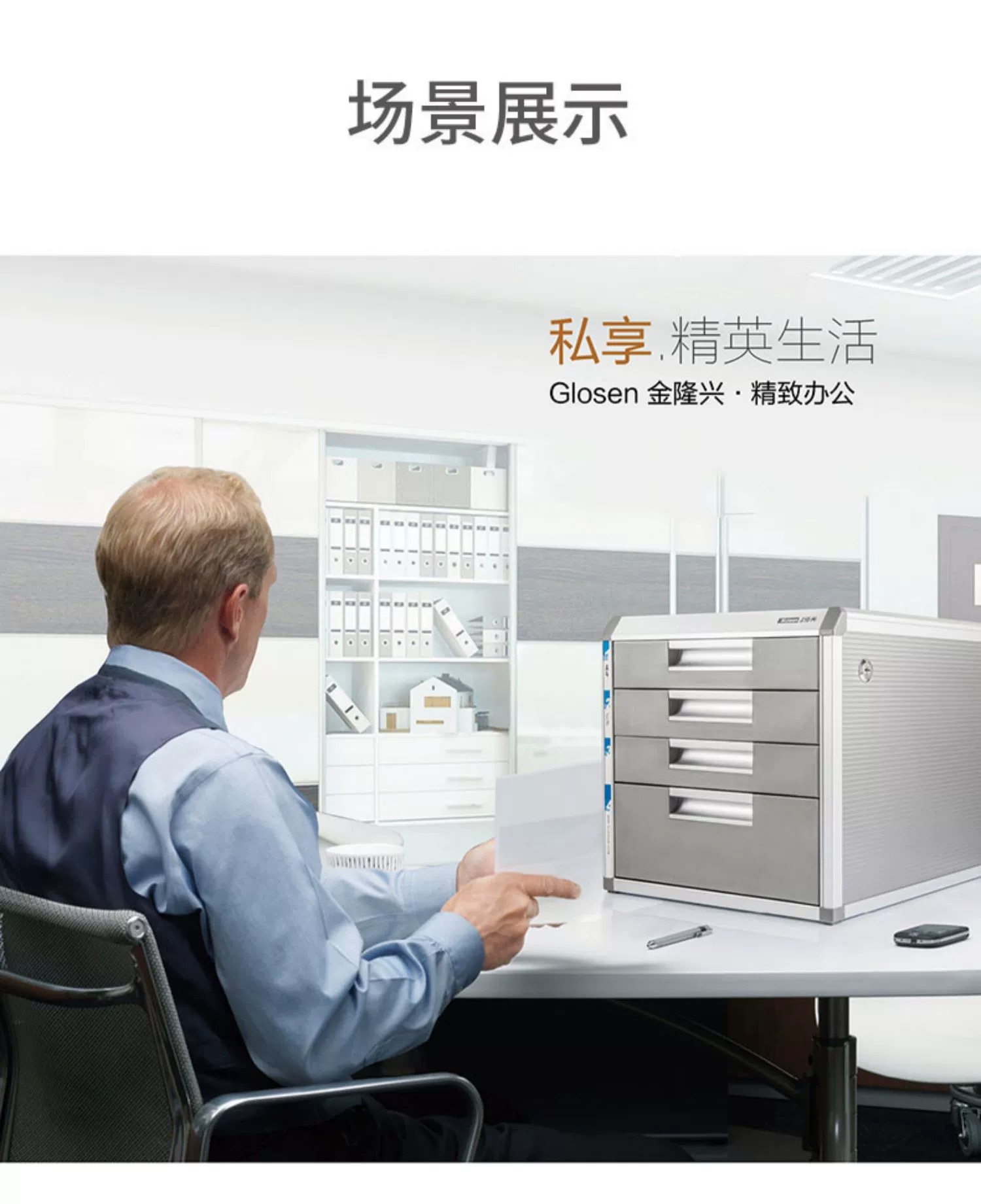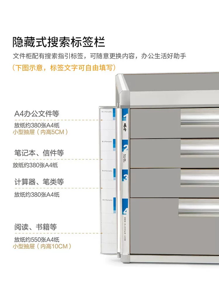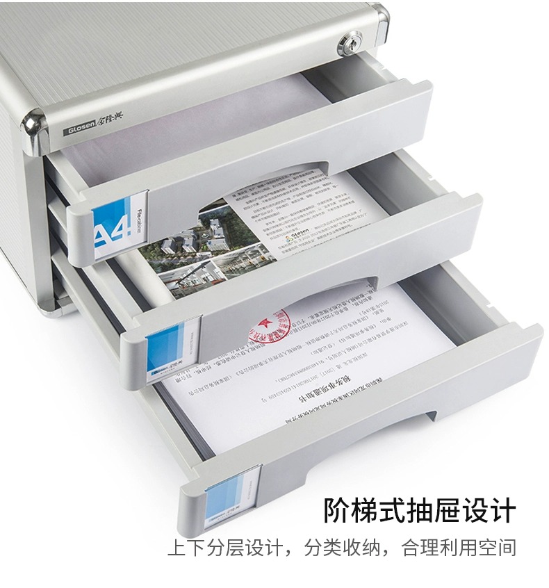 金隆兴Glosen 四层铝合金桌面文件收纳柜办公资料柜带锁档案柜C9931(单位:个) 银色
