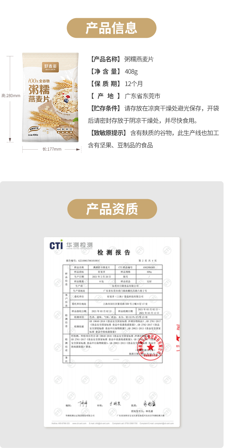 好麦多粥糯燕麦片408g(单位:袋) 白色 澳洲轻卡燕麦片408g