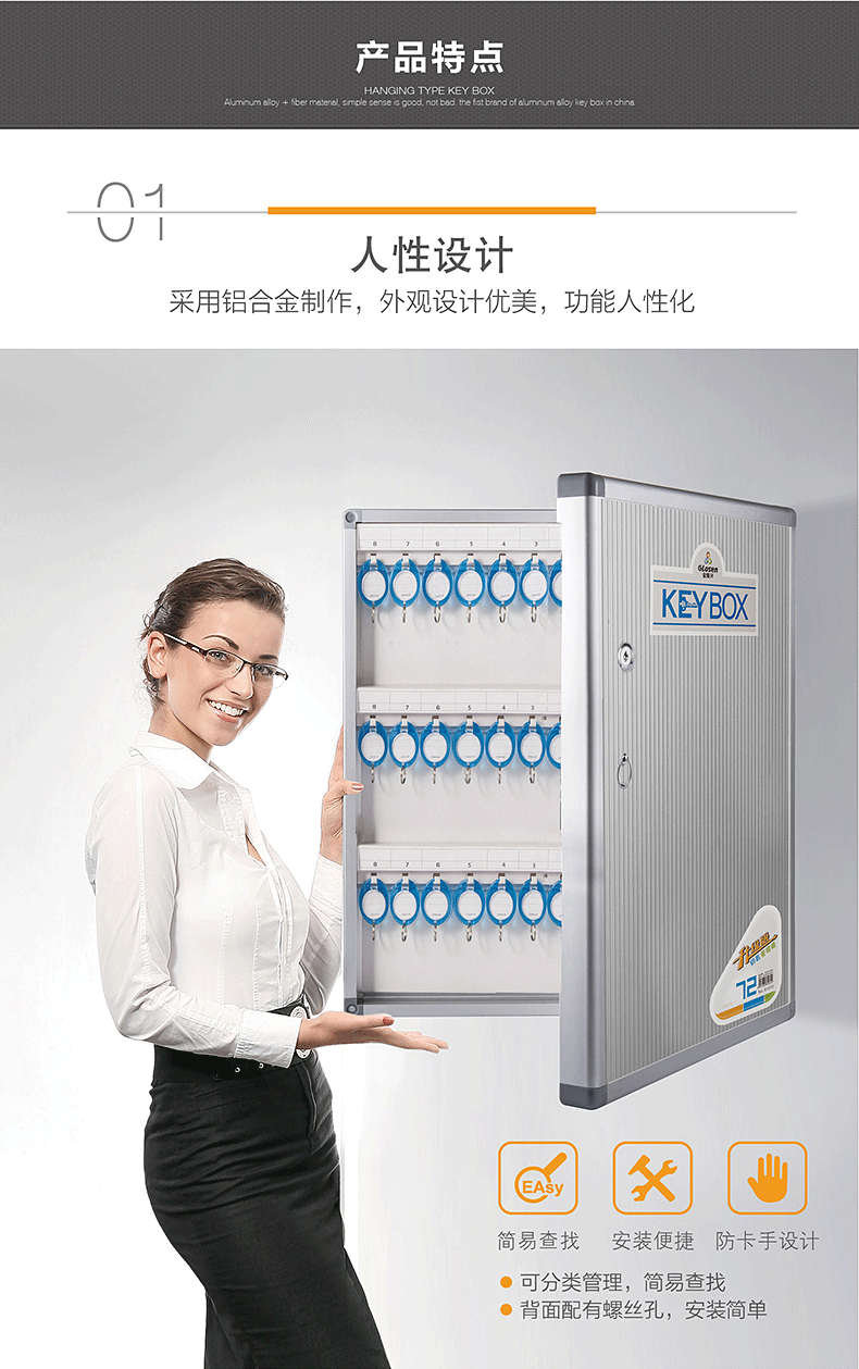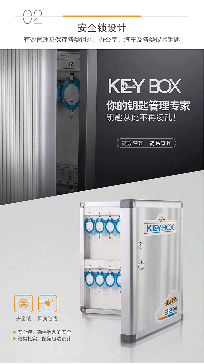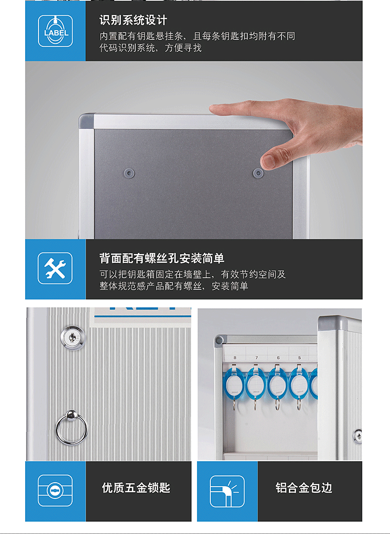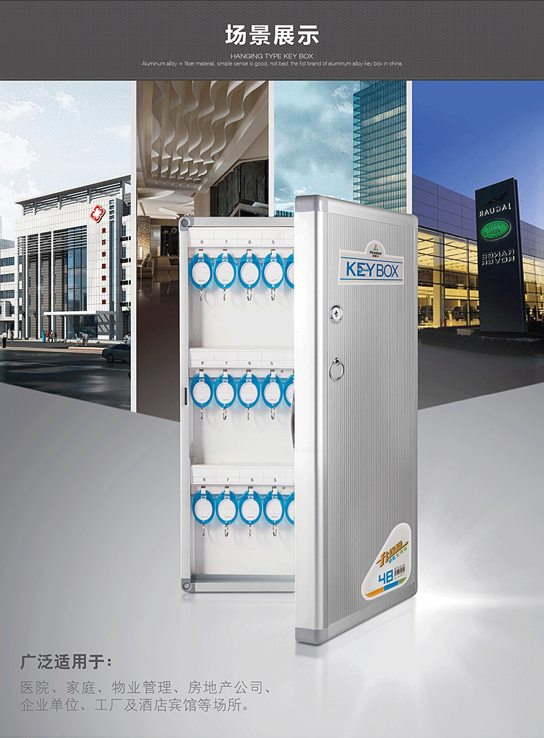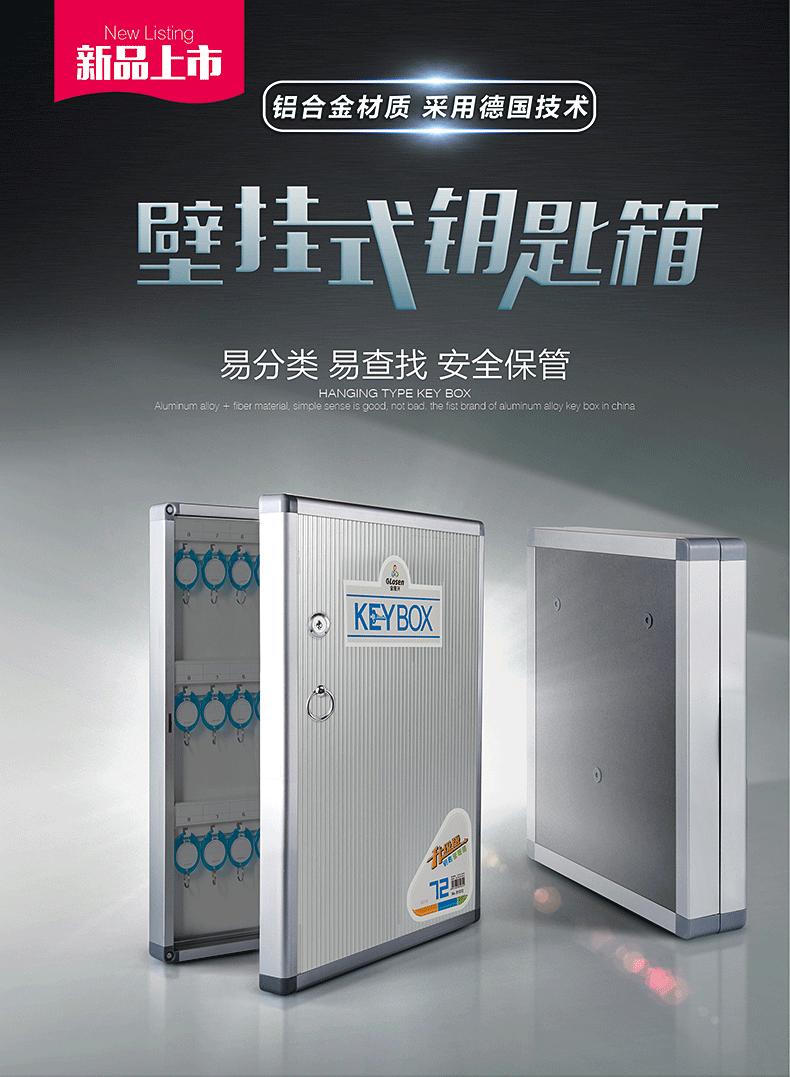 金隆兴Glosen 48位壁挂式铝合金带锁钥匙收纳管理箱 含钥匙牌B1048(单位:个) 红色