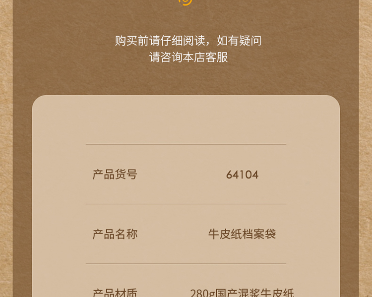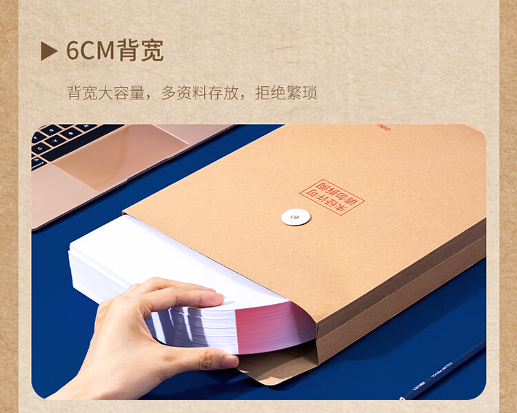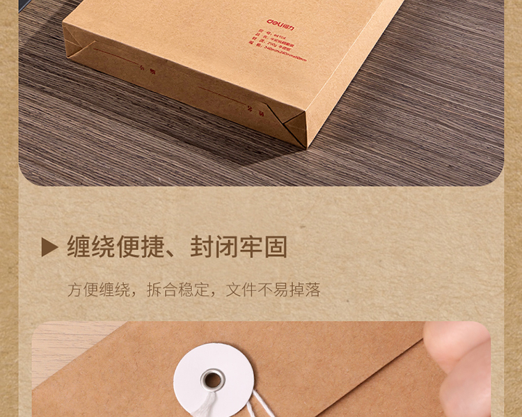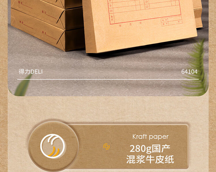 得力(deli)280g牛皮纸档案袋票据收纳侧宽6cm标书合同文件资料袋 64104 单位:个 黄色