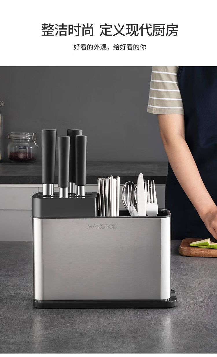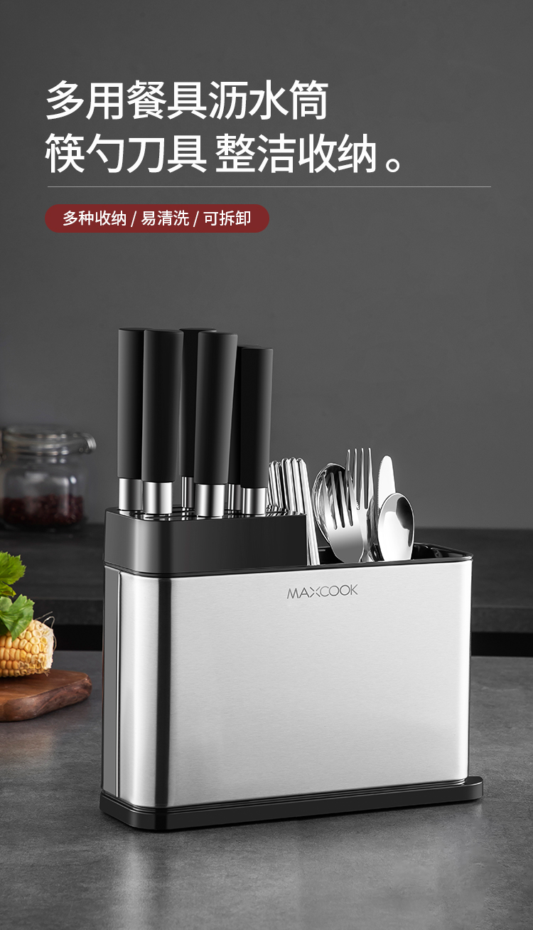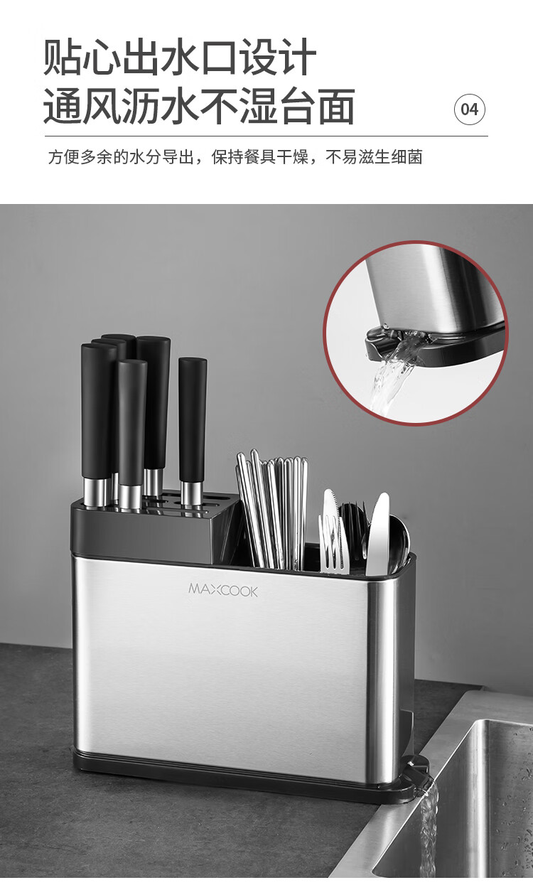 美厨(maxcook)刀架刀座 筷子筒筷子架厨房置物架沥水架收纳架 MCZW297(个) 不锈钢色