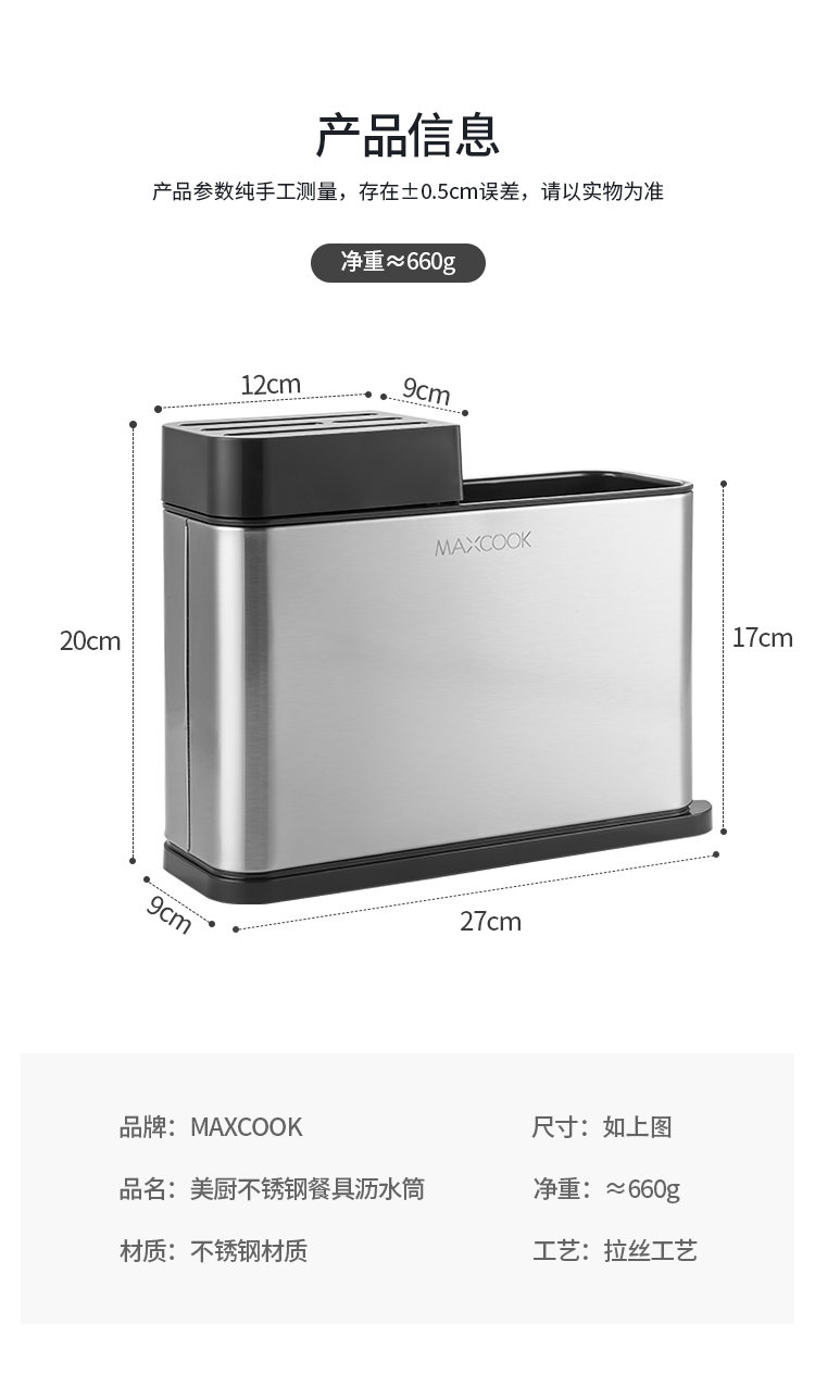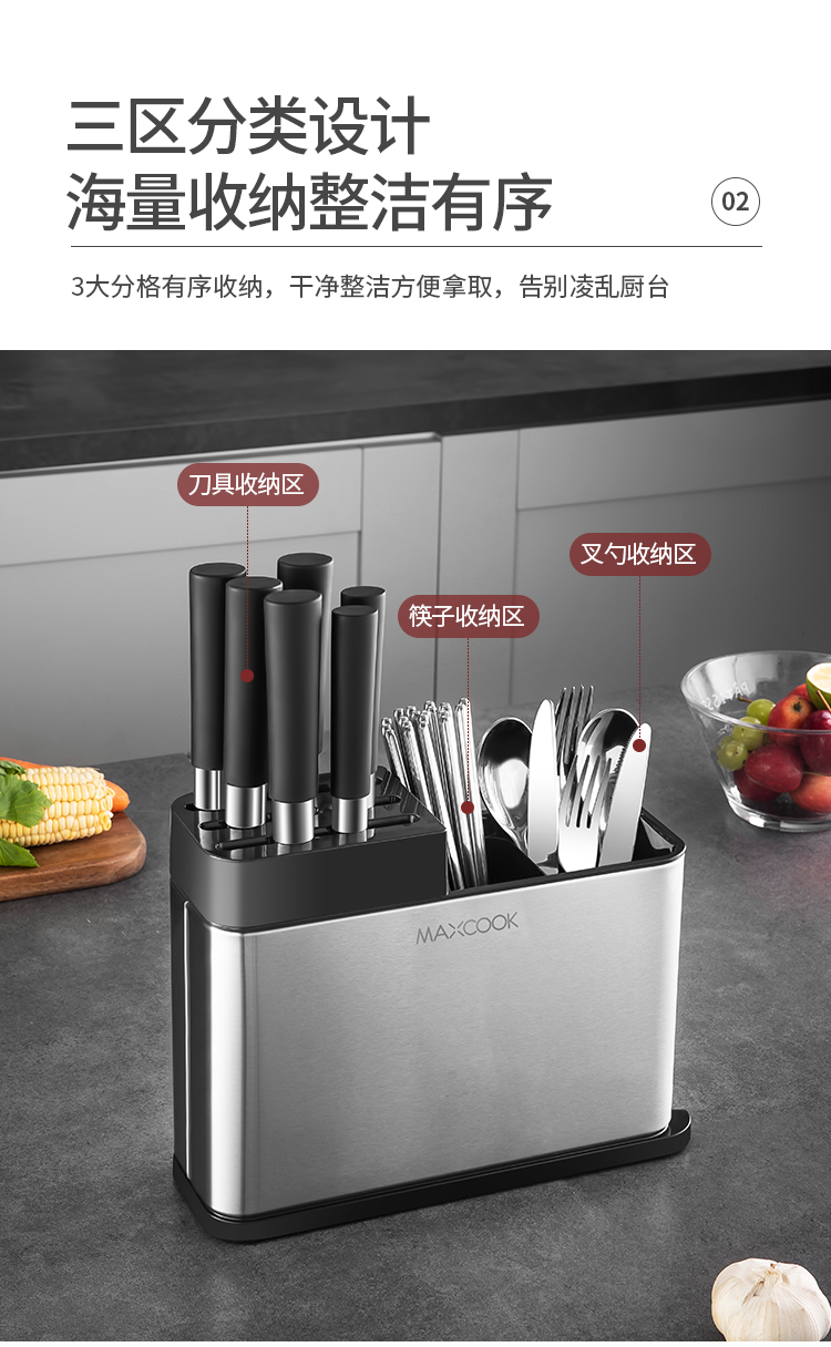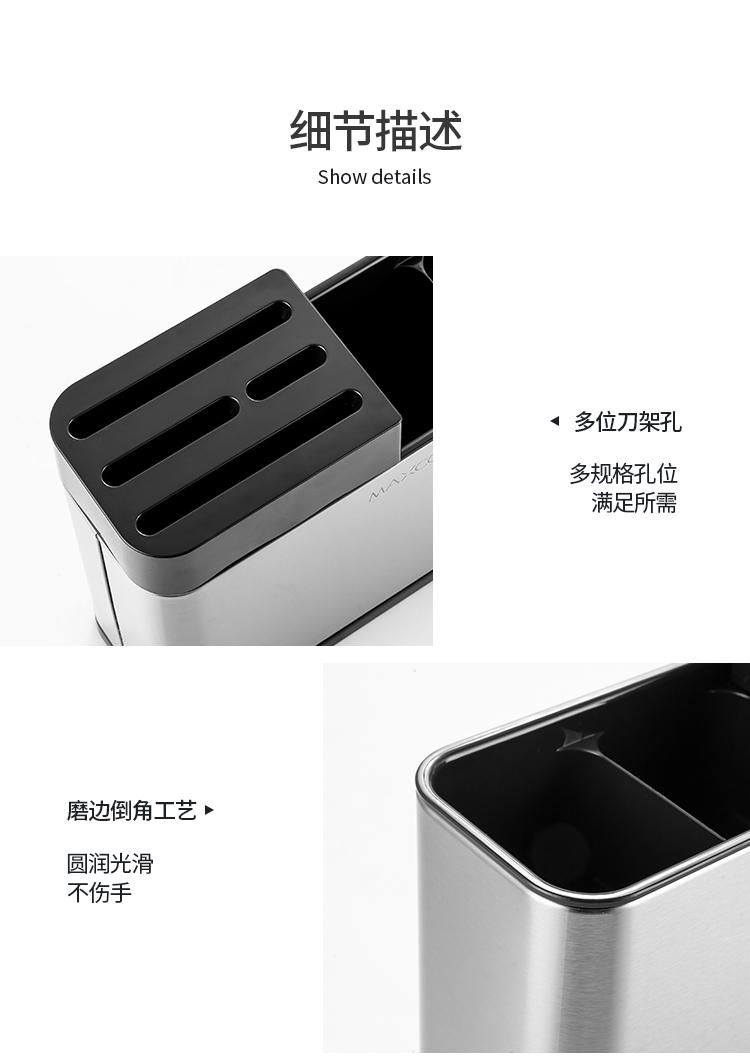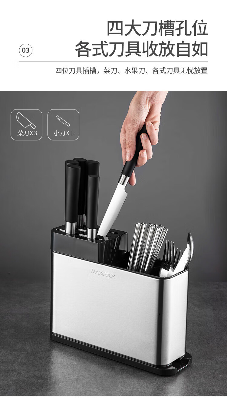 美厨(maxcook)刀架刀座 筷子筒筷子架厨房置物架沥水架收纳架 MCZW297(个) 不锈钢色