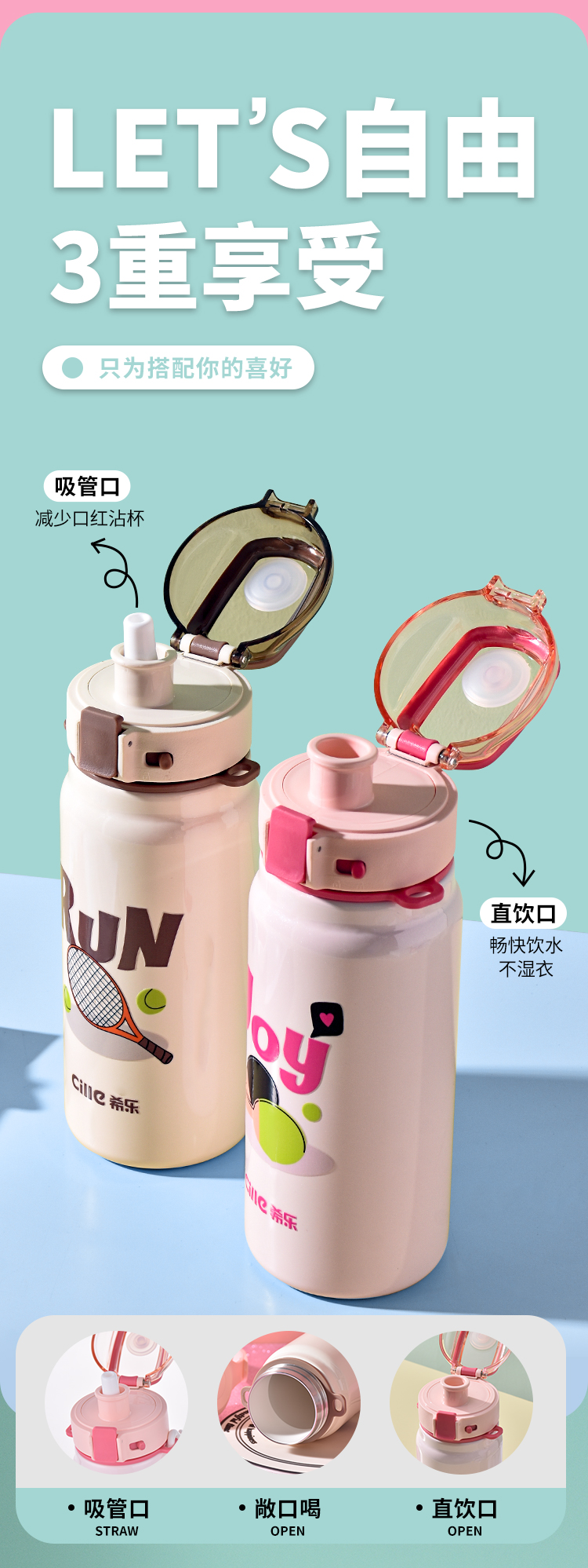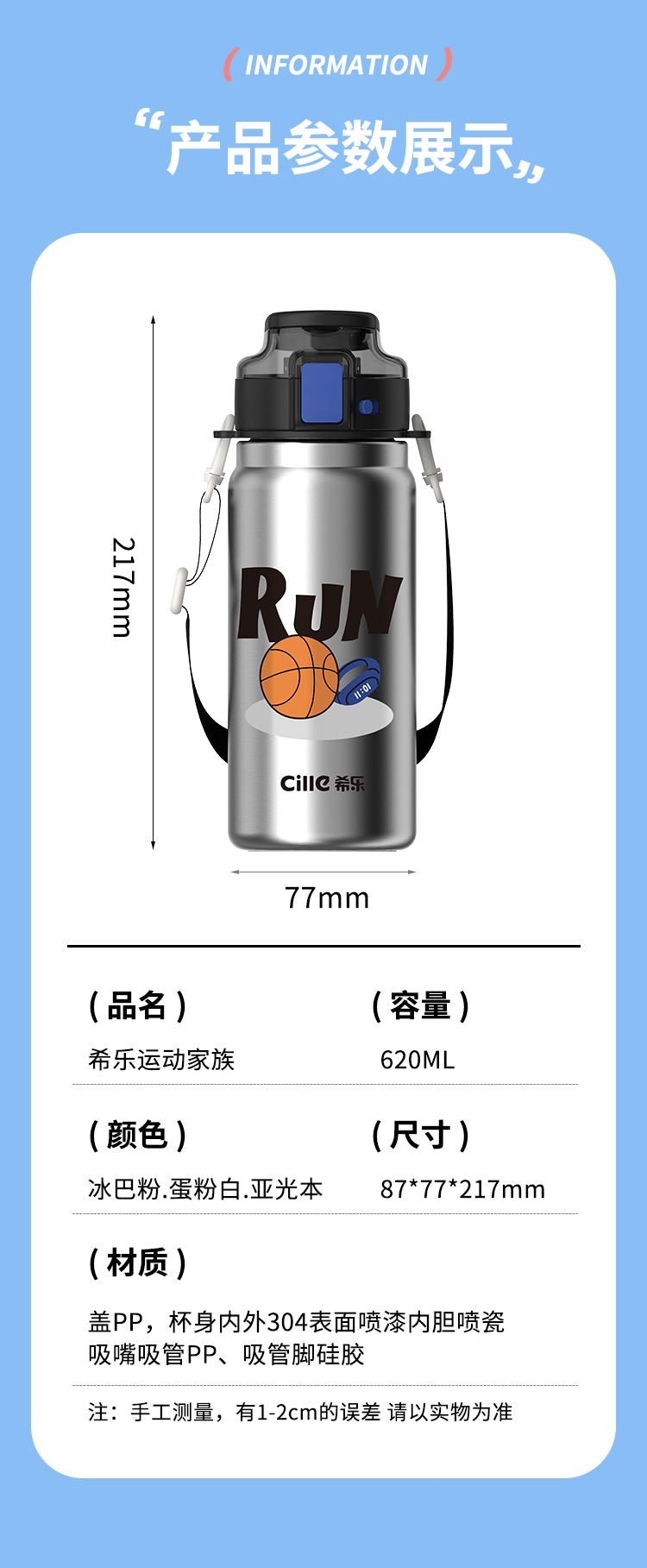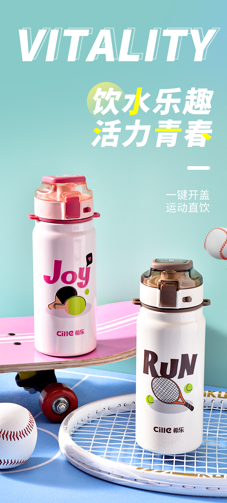 希乐(cille)运动家族水杯620ml 单位:个 蛋粉白