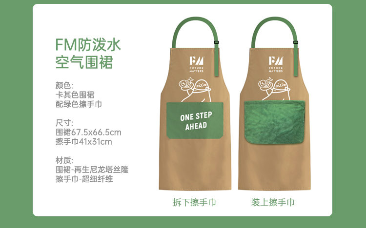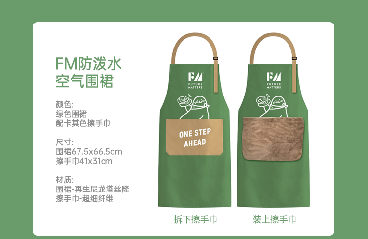 FUTURE MATTERS防泼水空气围裙 绿色 1条(配可拆卸毛巾) 绿色