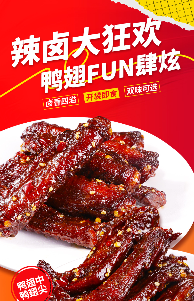 馋小乖香辣鸭翅尖 (香辣味*2包+爆辣味*2包) 4包 100g*4 单位:包 黄/红色