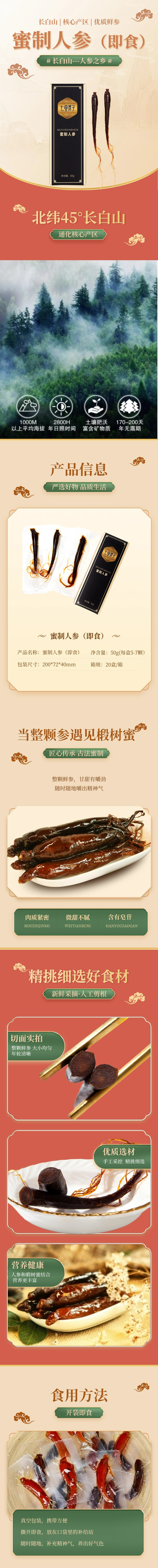 七里浮子蜜制人参(即食)50g(每盒5-7颗) 拿铁色