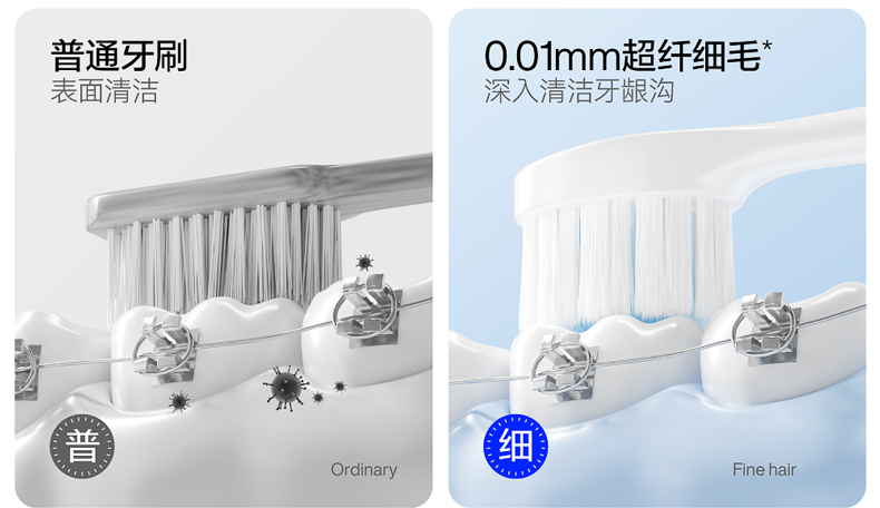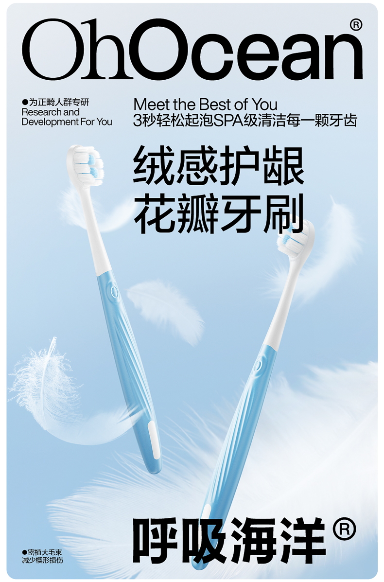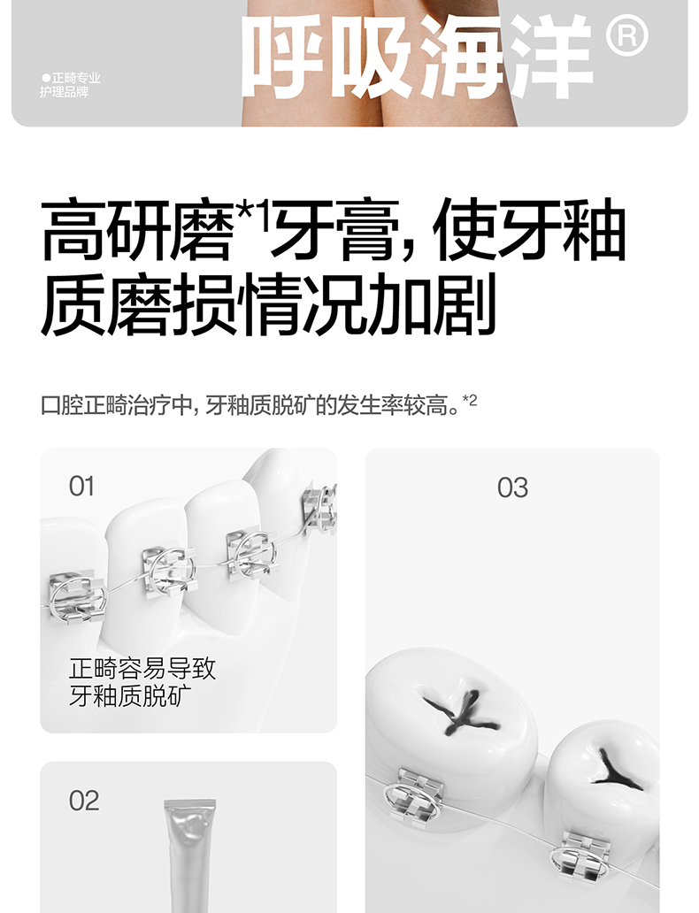 呼吸海洋正畸专用高含氟低研磨牙膏软毛牙刷防蛀固齿家庭洗漱双人套装(单位:套) 白色