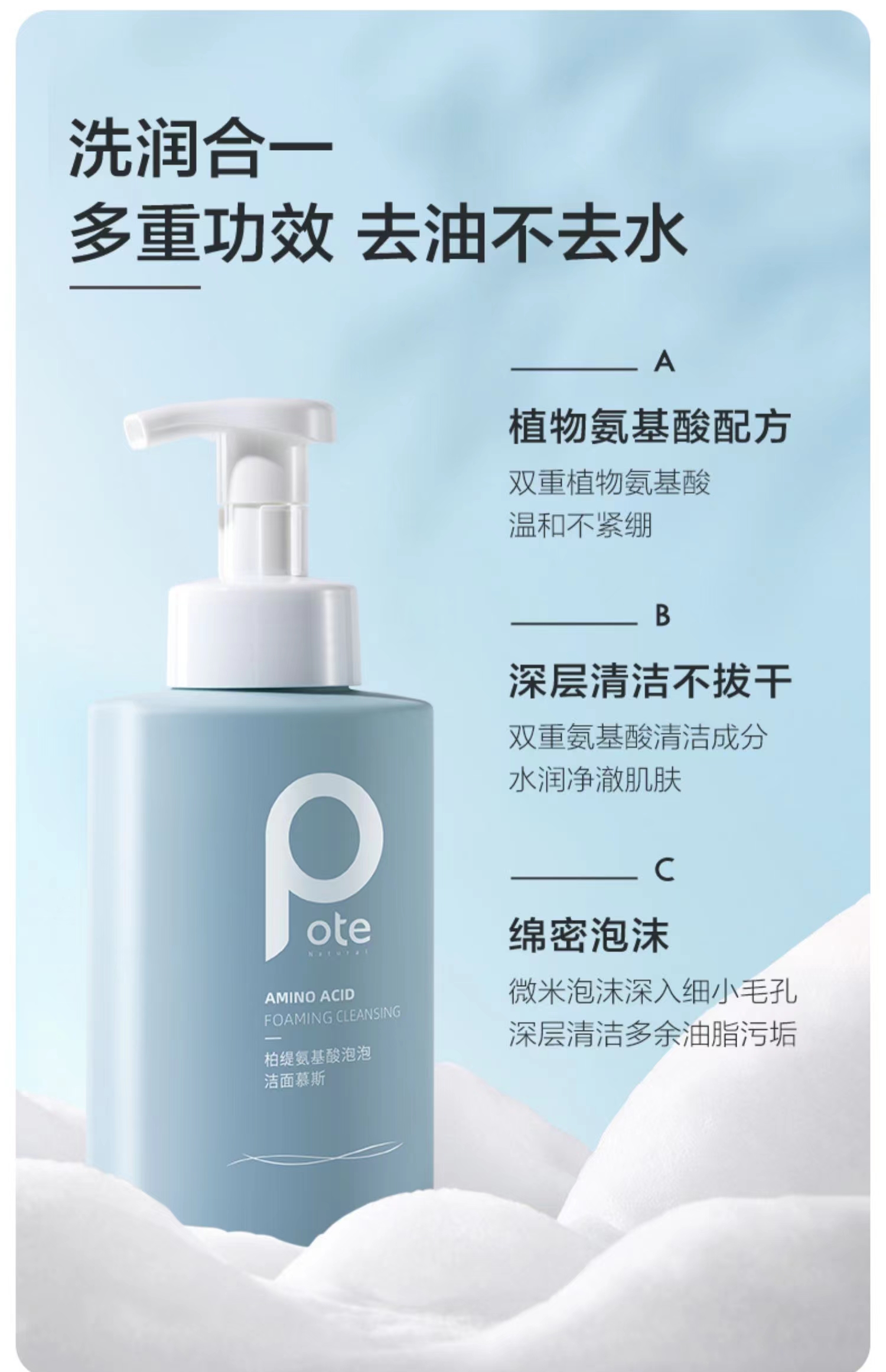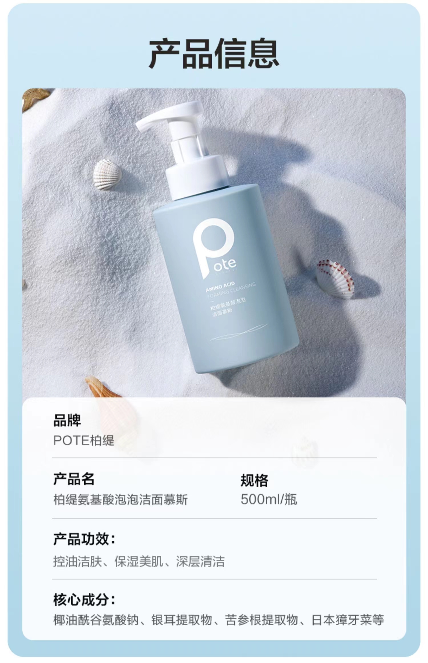 柏缇氨基酸泡泡洁面慕斯(彩盒装)500ml(单位:瓶) 尼加拉蓝
