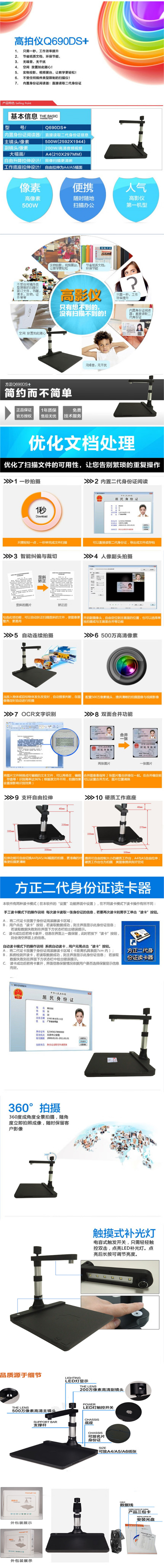 方正(Founder)Q690DS+双摄高拍仪 A3/A4高清信息采集扫描仪单位:台 黑色