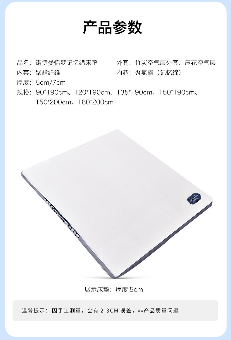 诺伊曼(noyoke) 海绵床垫 180*200*5cm 床垫 白色(单位:床)