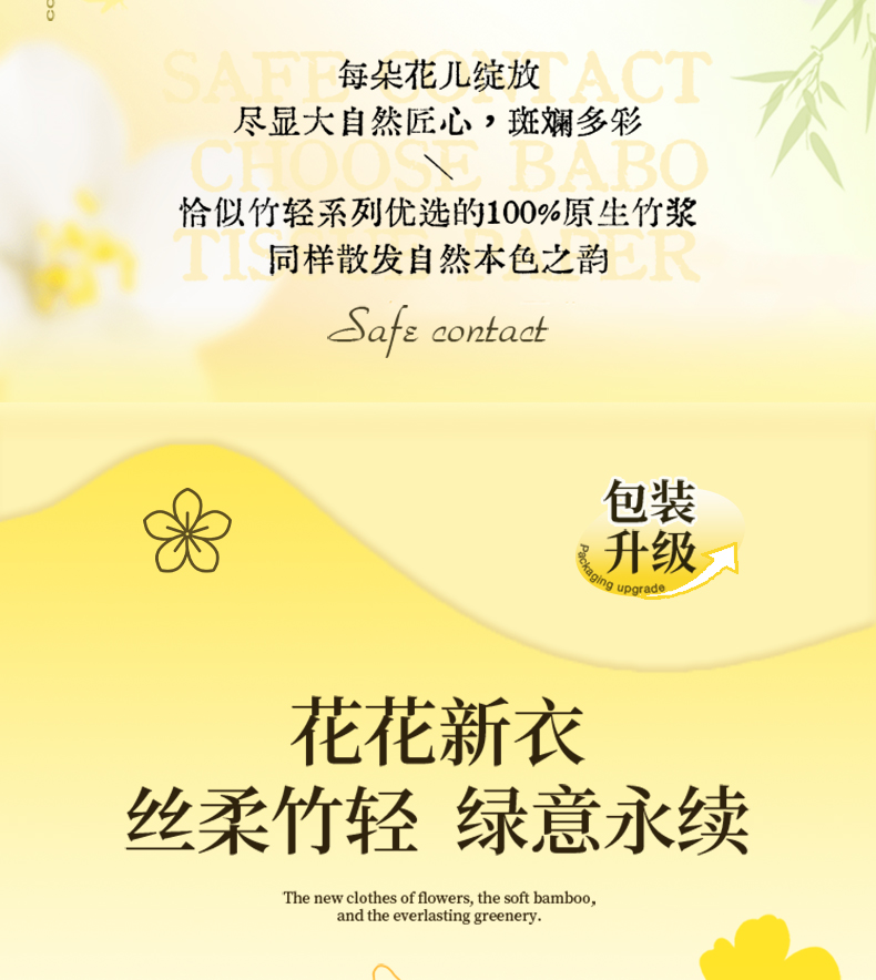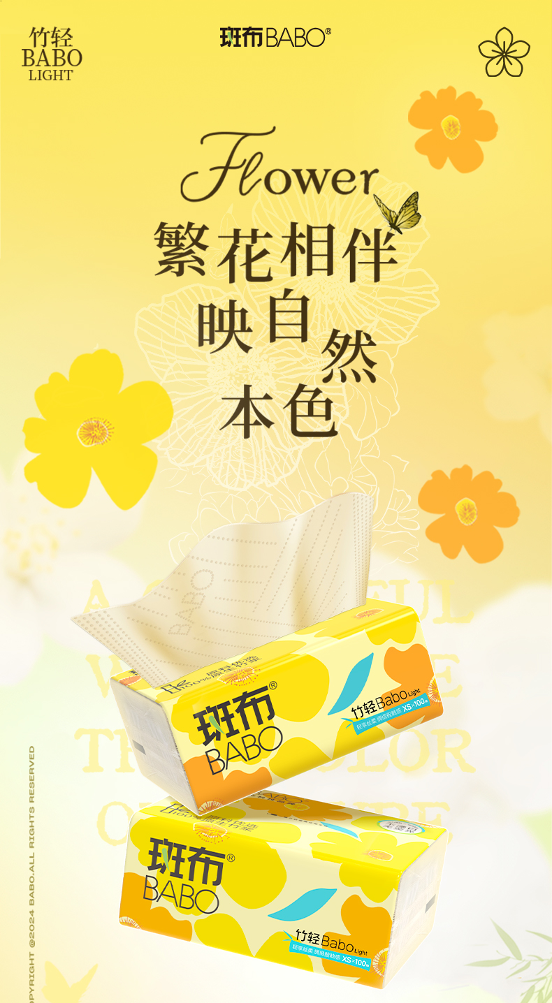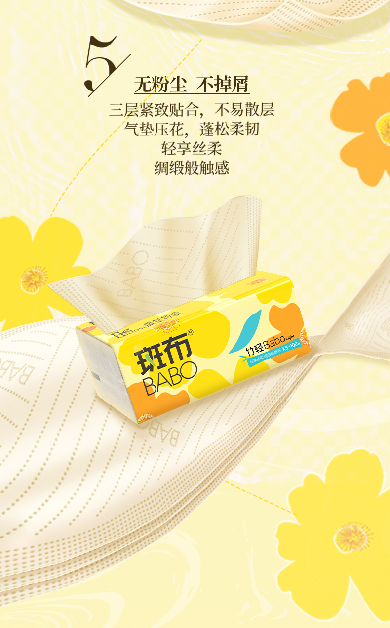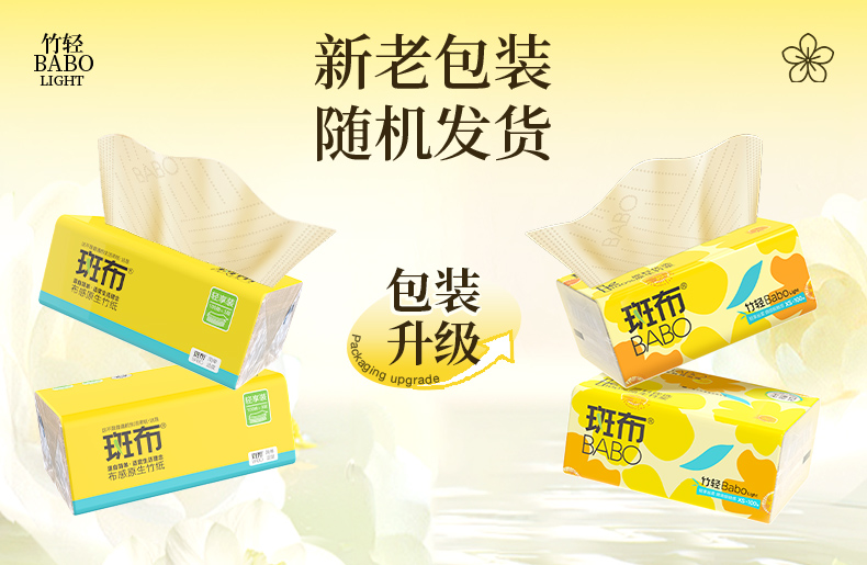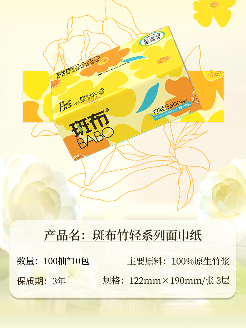 斑布(BABO) 竹轻系列纸面巾100抽*10包BZR100E10-1(单位:提) 黄色