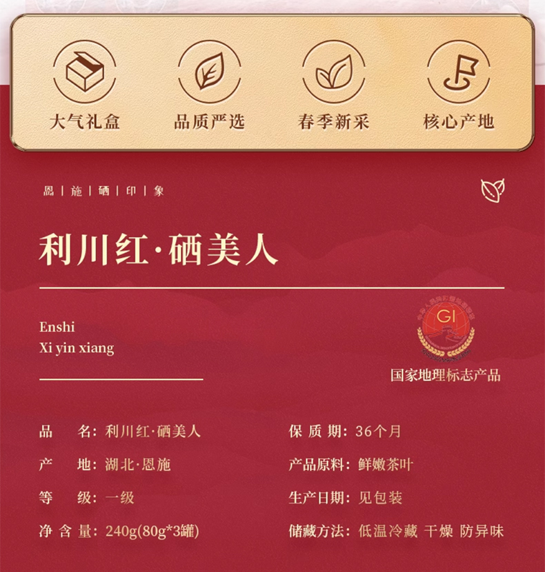 茶马世家硒美人利川红礼盒装240g 单位:盒 红色