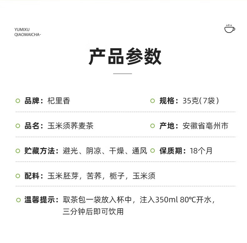 杞里香盒装玉米须荞麦茶35g*1盒 奶茶杏