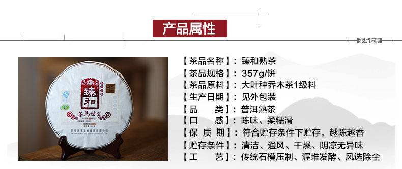 茶马世家臻和普洱熟茶古风礼盒装 357g 单位:饼 白色