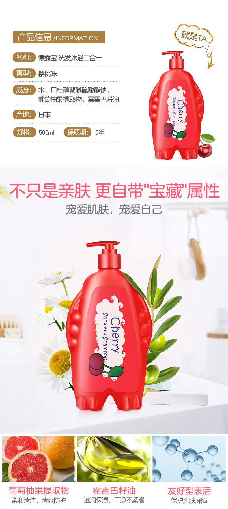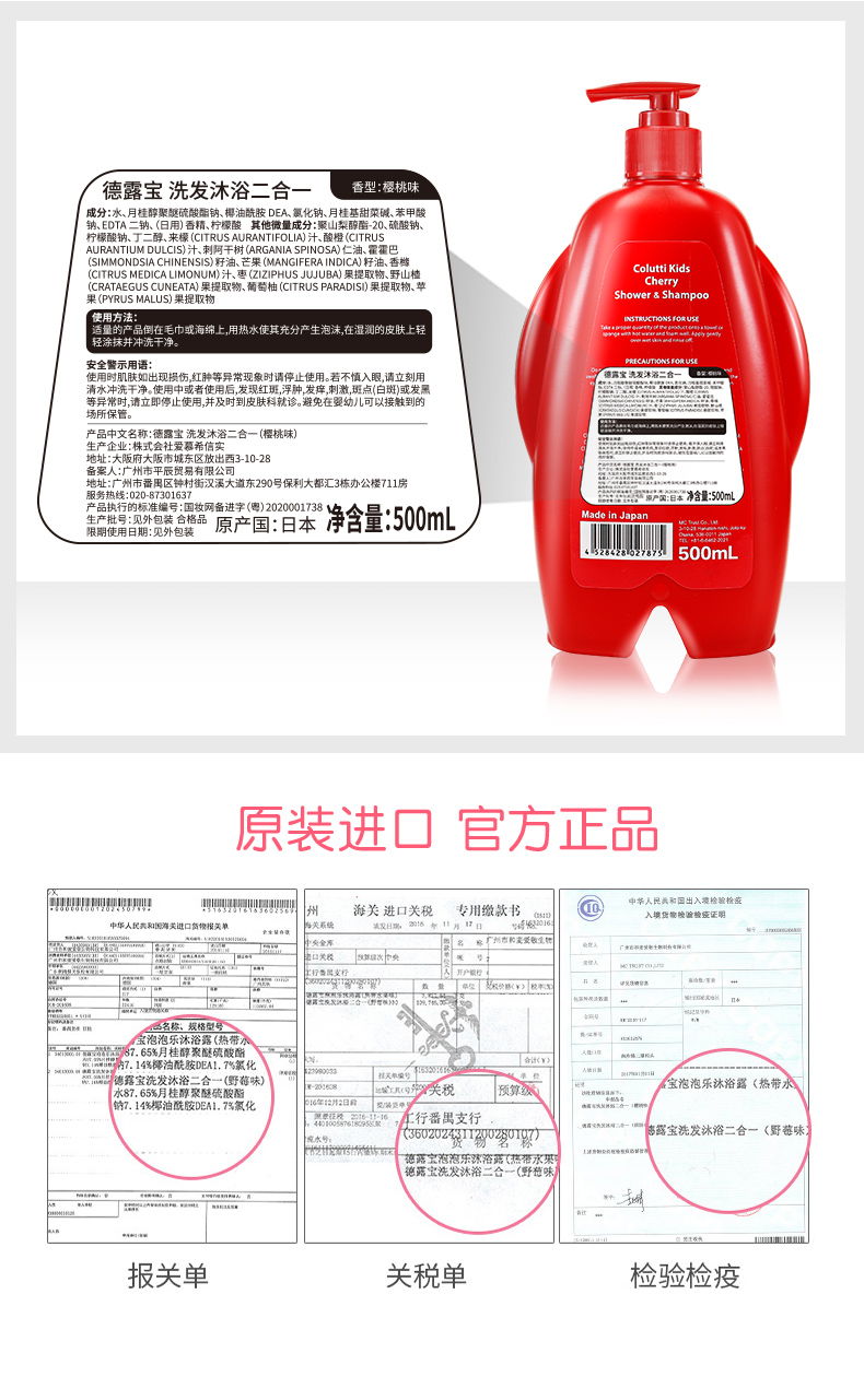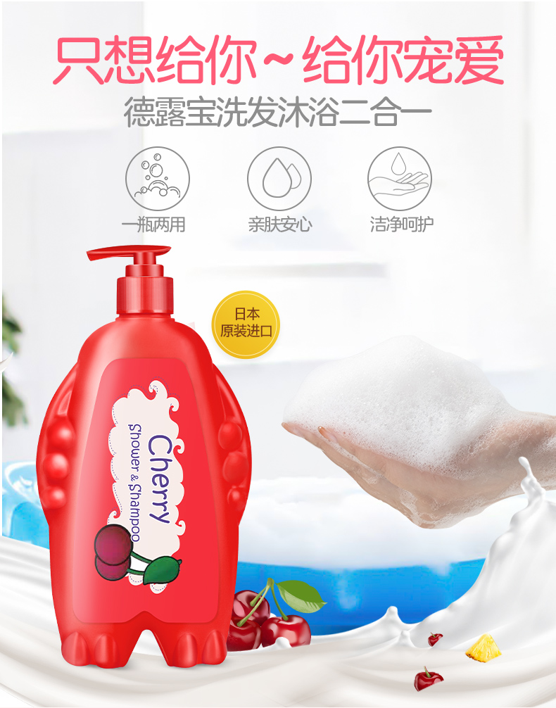 德露宝(Colutti Kids)洗发沐浴二合一(樱桃味)500mL(单位:瓶) 红色