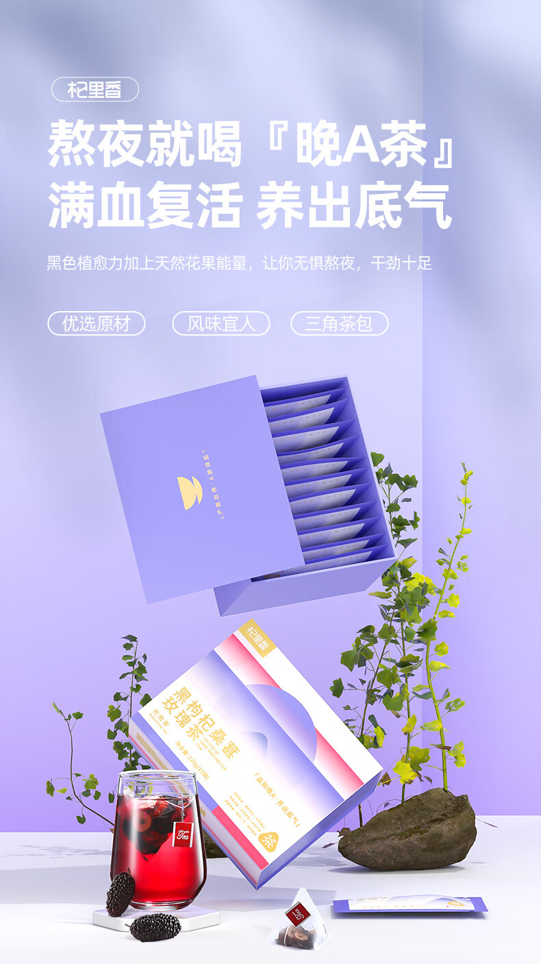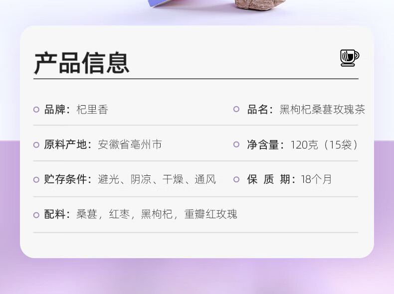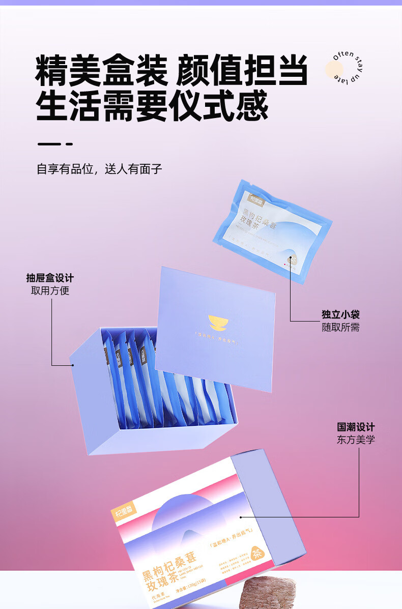 杞里香 盒装黑枸杞桑葚玫瑰茶120g*1盒 蓝色