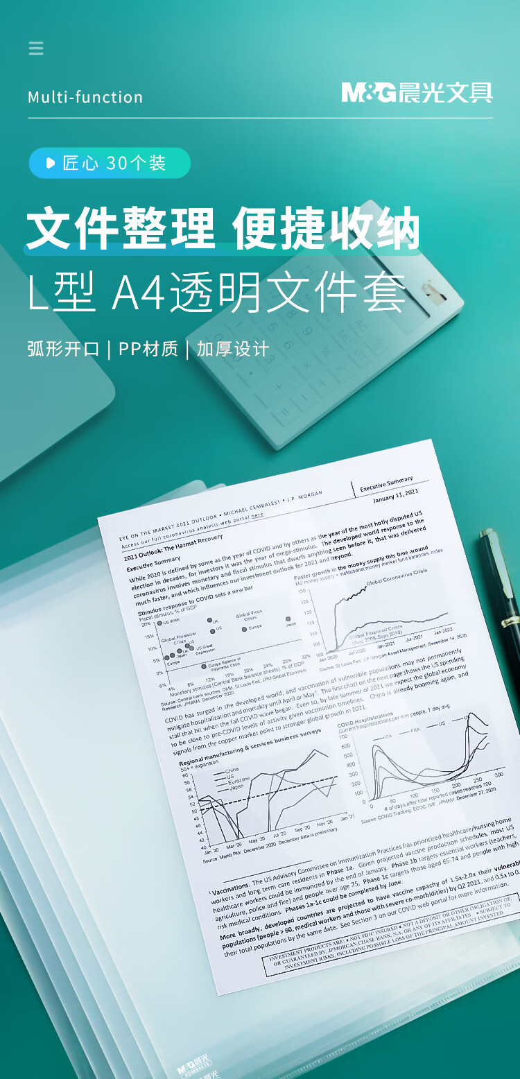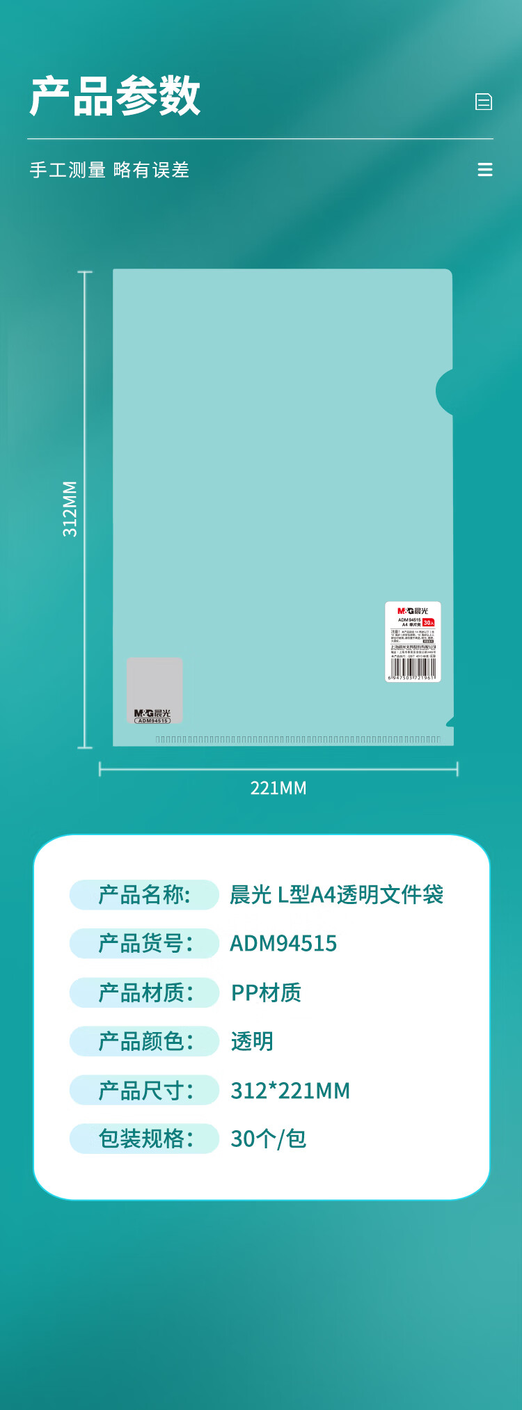 晨光 M&G 二页文件套 ADM94515 A4 (透明白) 30个/包 白色 白色