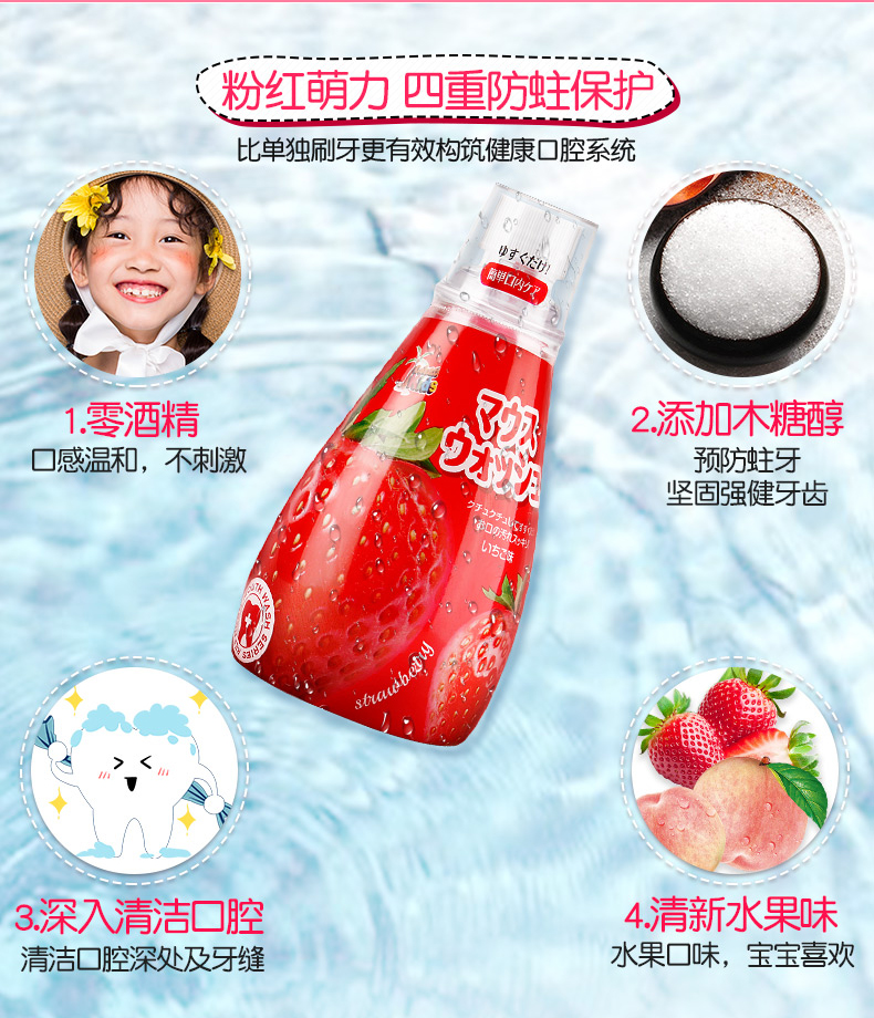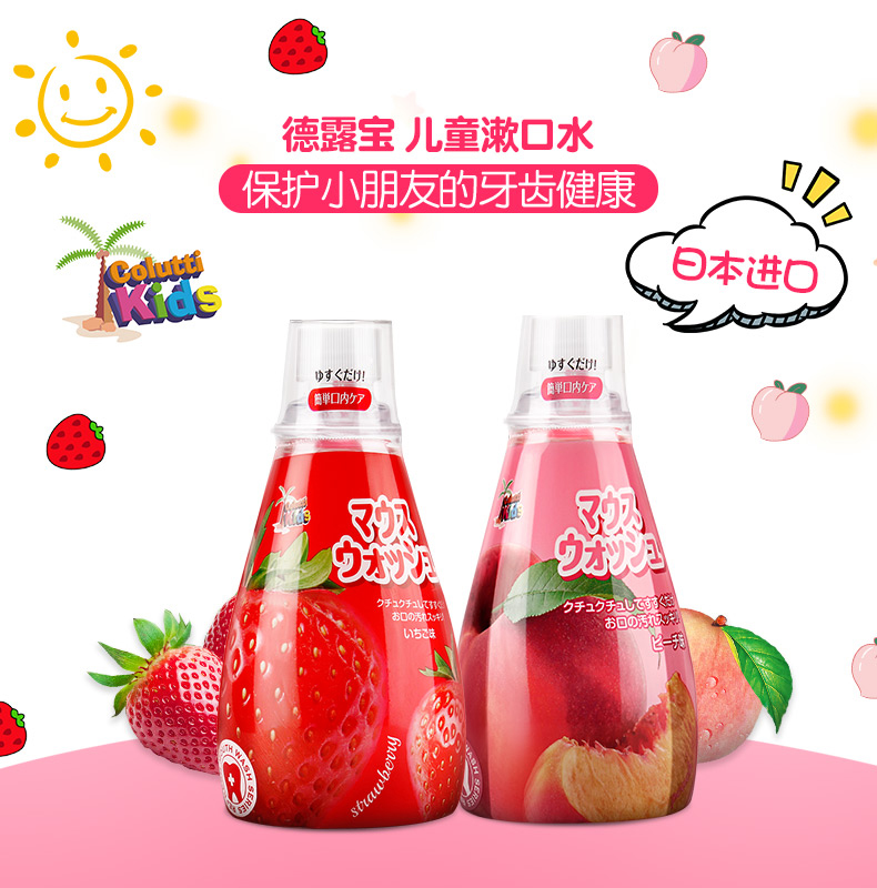 德露宝(Colutti Kids)儿童漱口水草莓味340mL+水蜜桃味340mL(单位:套) 甜莓味