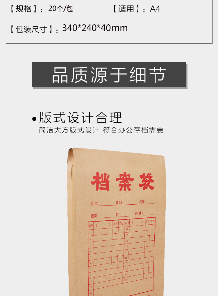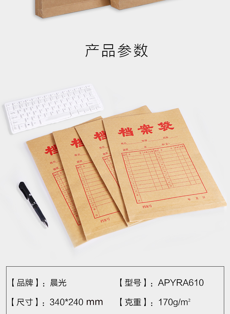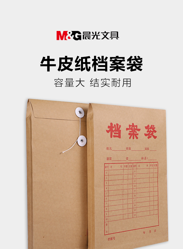 晨光(M&G)牛皮纸档案袋APYRA610加厚款A4绳扣式便携耐用办公用品合同文件档案收纳专用20个 黄色