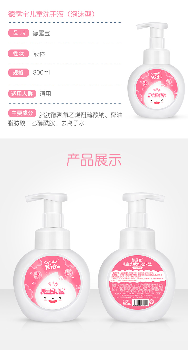 德露宝(Colutti Kids)儿童洗手液(泡沫型)300mL(单位:瓶) 本白色