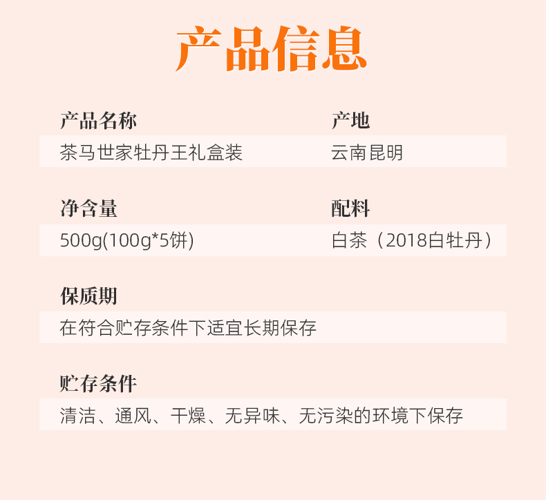 茶马世家牡丹王白茶礼盒装500g(100g*5饼)单位:盒 白色