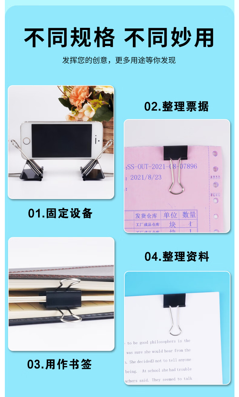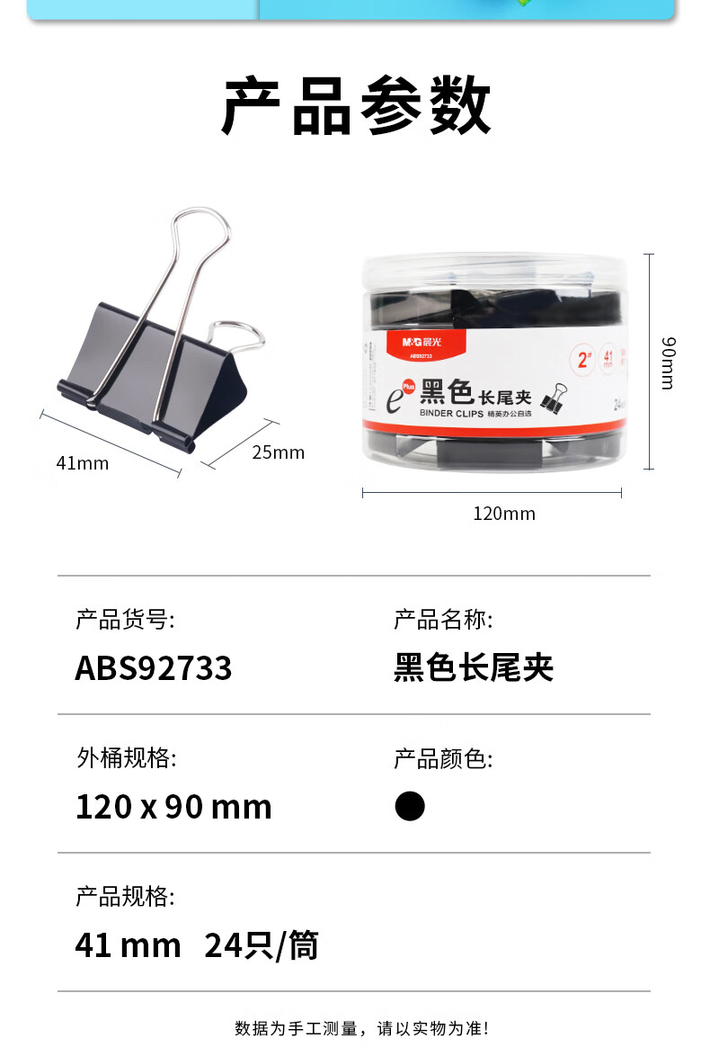 晨光(M&G)ABS92733 文具2#41mm 黑色长尾夹 Eplus系列办公燕尾夹 24只 筒 黑色