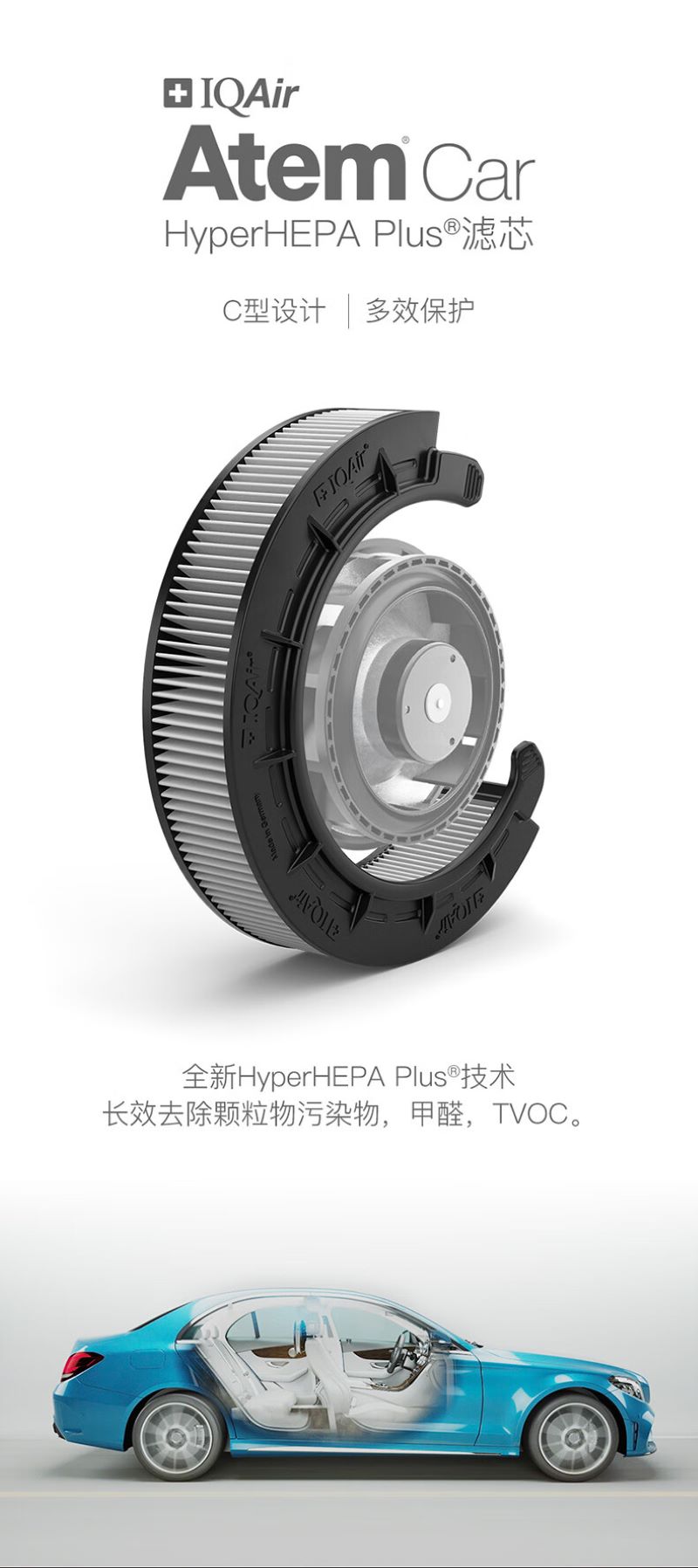 IQAir 车载空气净化器Atem HyperHEPA Plus 适用Atem Car(单位:件) 黑色