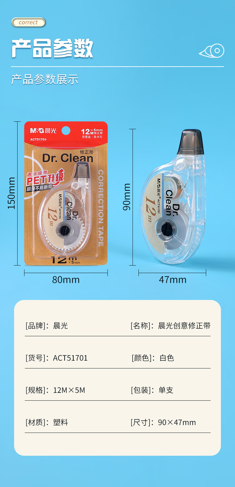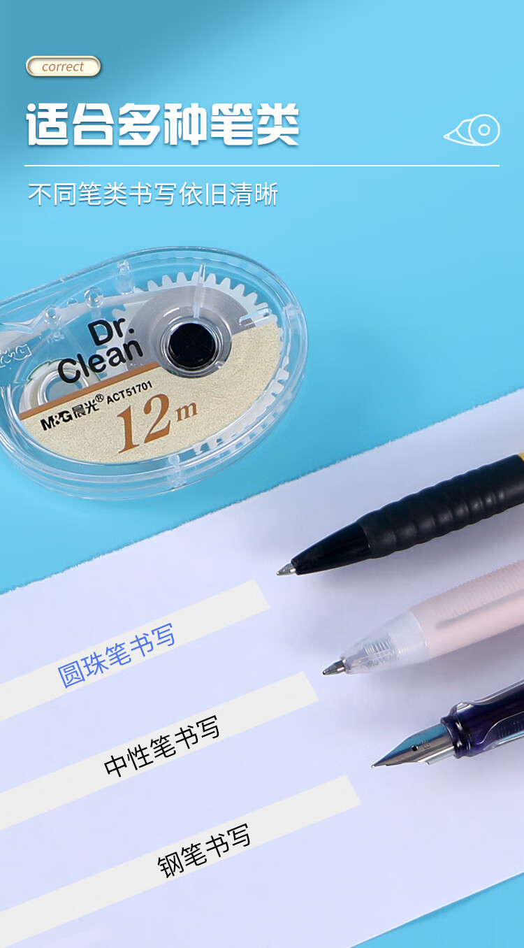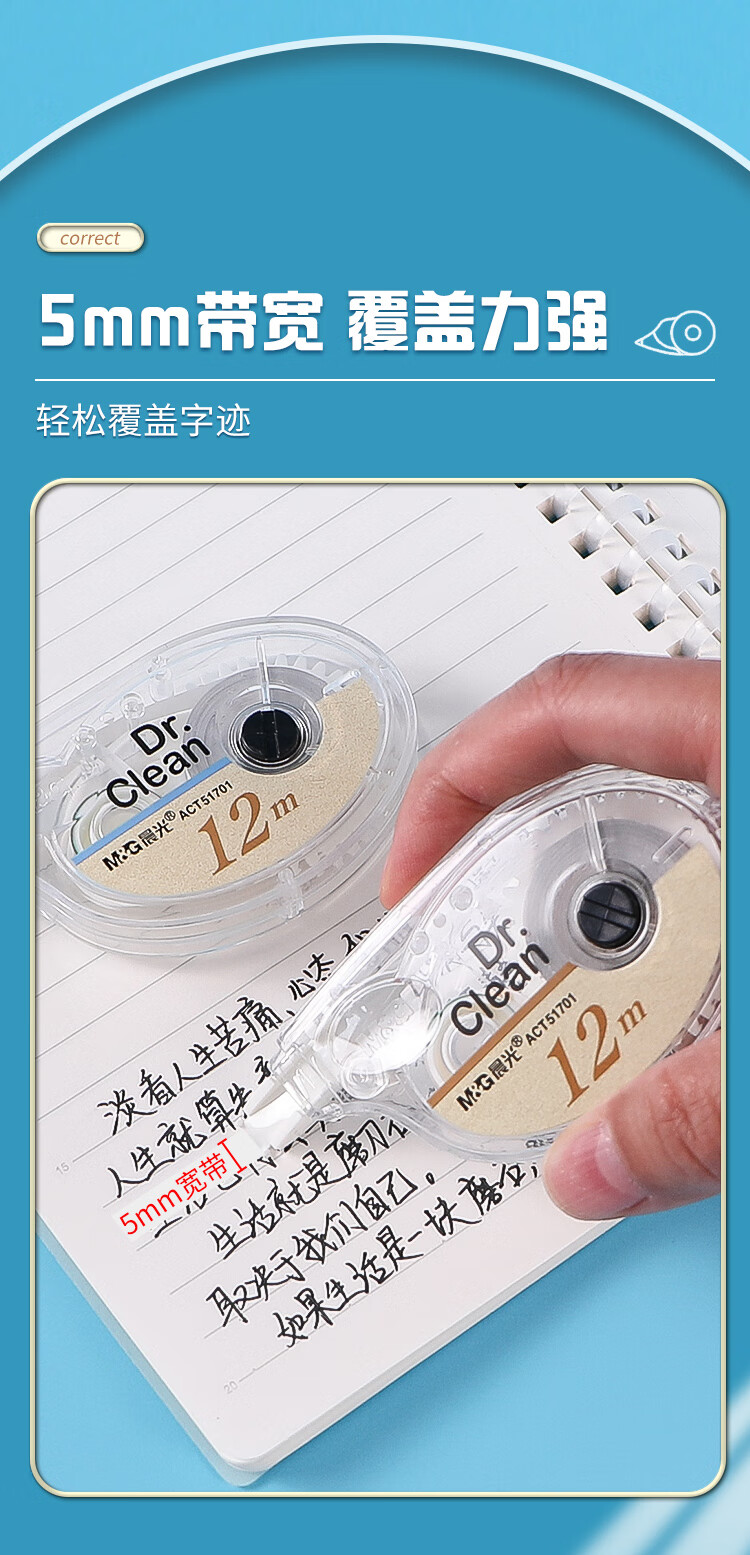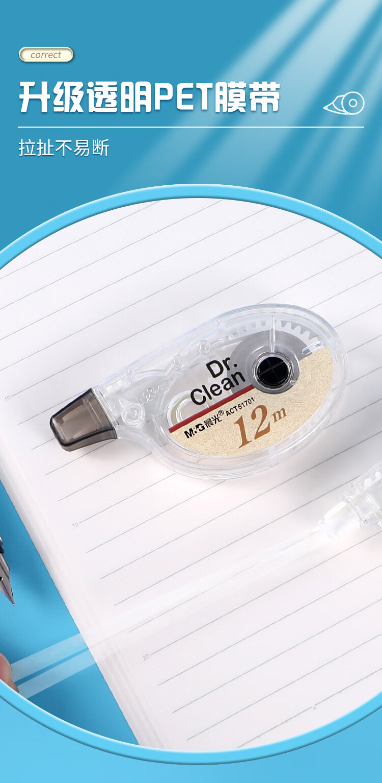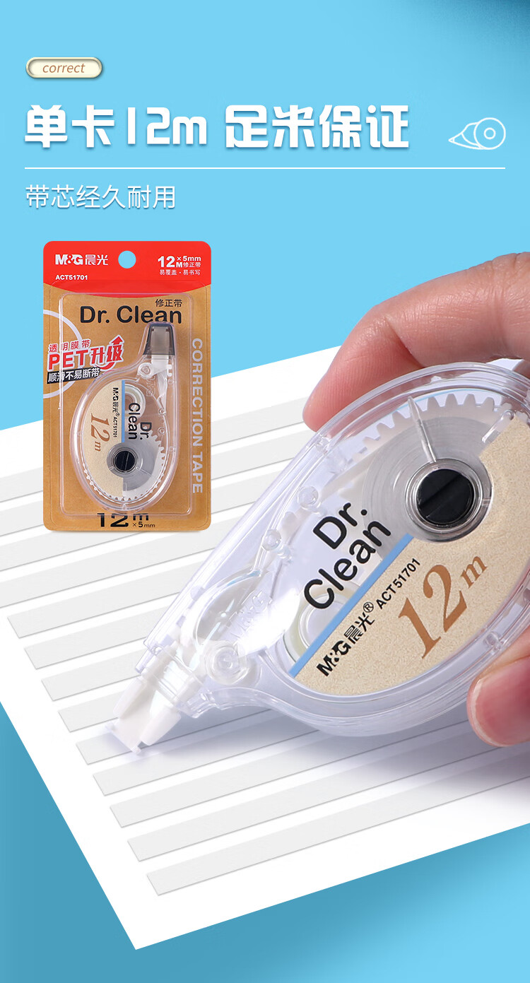 晨光(M&G)晨光文具ACT51701修正带12米学生作业用修正涂改带12卡装/盒